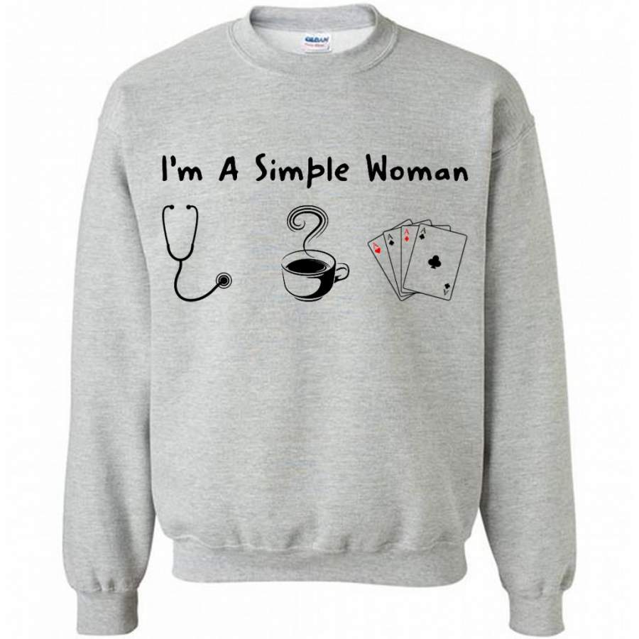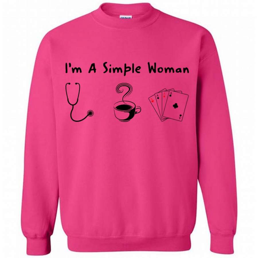 I’m A Simple Woman Who Loves Nurse Coffee and Play Cards – Gildan Crewneck Sweatshirt