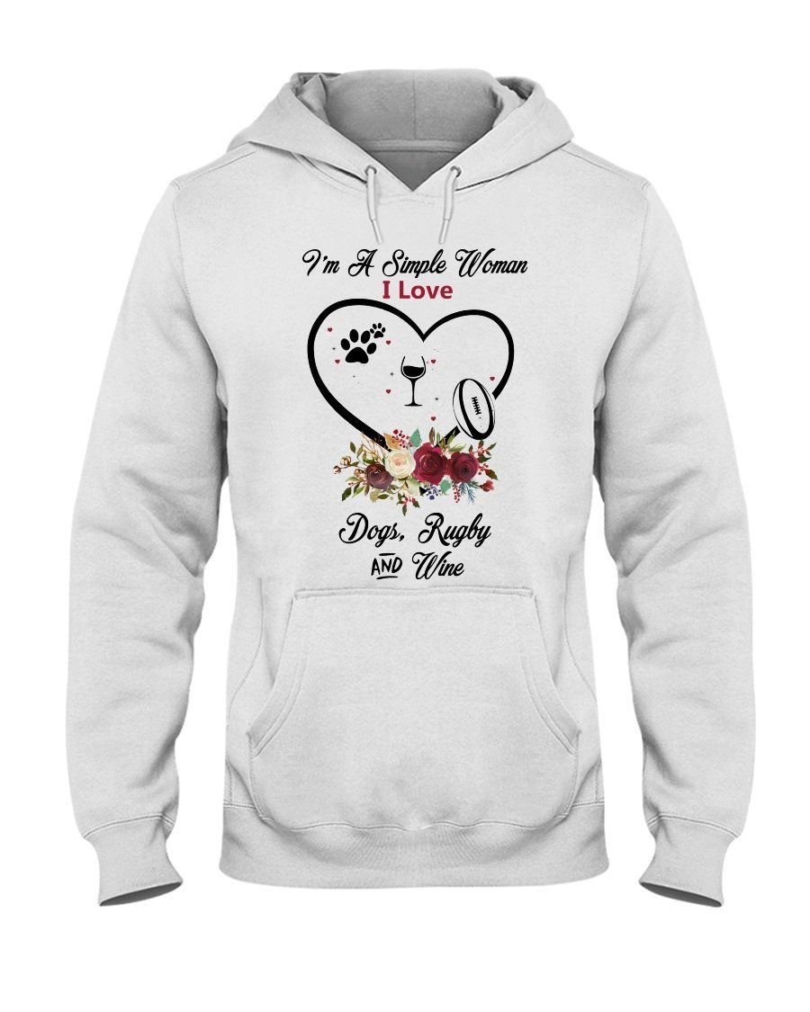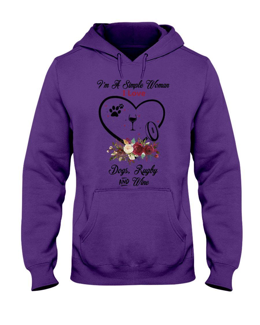 I’M A Simple Woman Who Loves Rugby Wine And Dogs Custom Design Hoodie