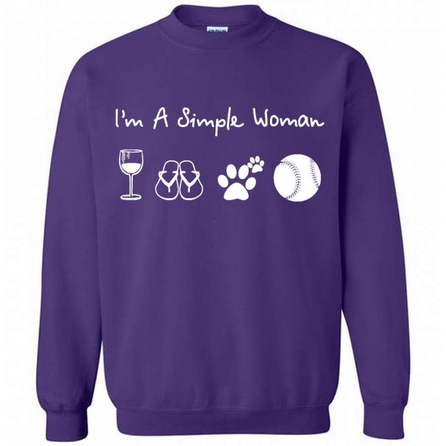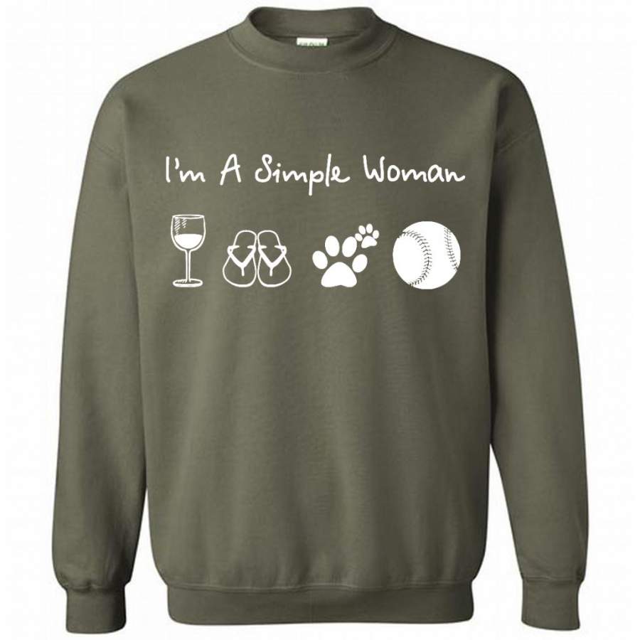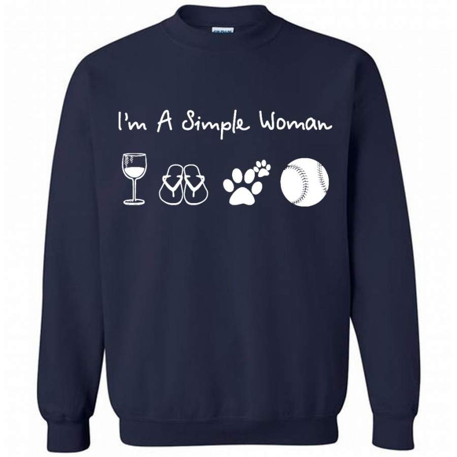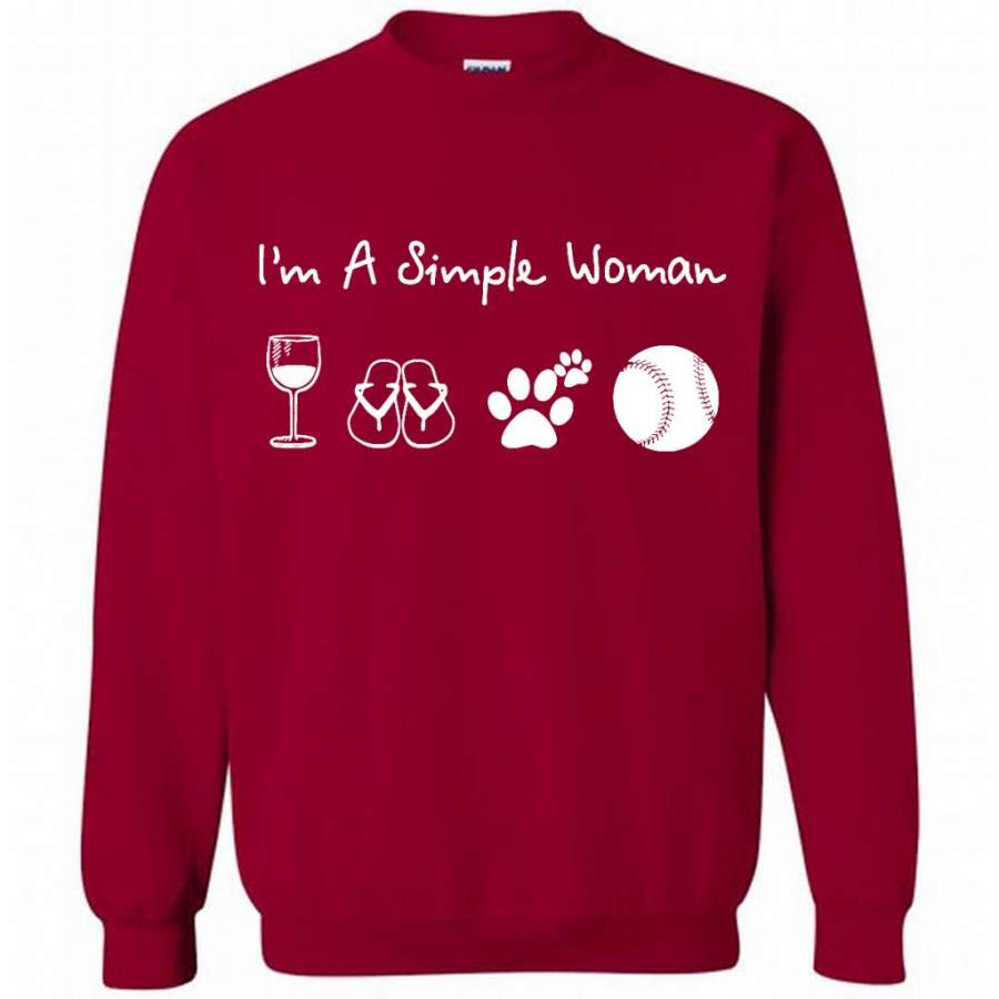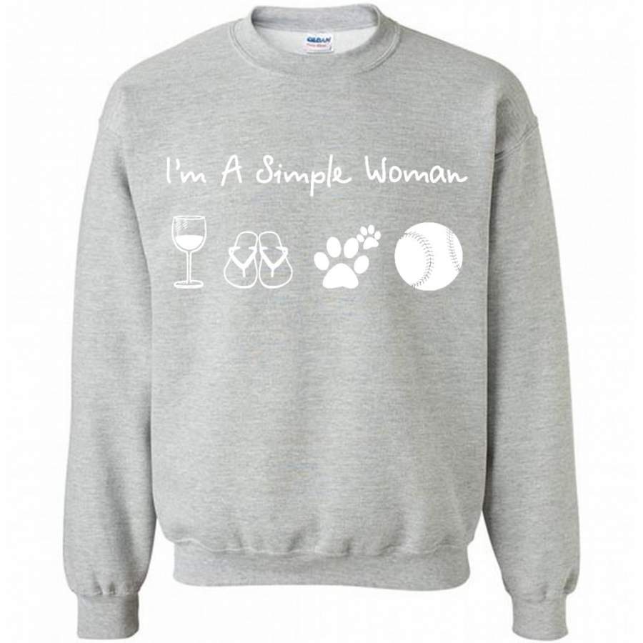I’m A Simple Woman Who Loves Wine Flip Flops Dogs And Baseball – Gildan Crewneck Sweatshirt