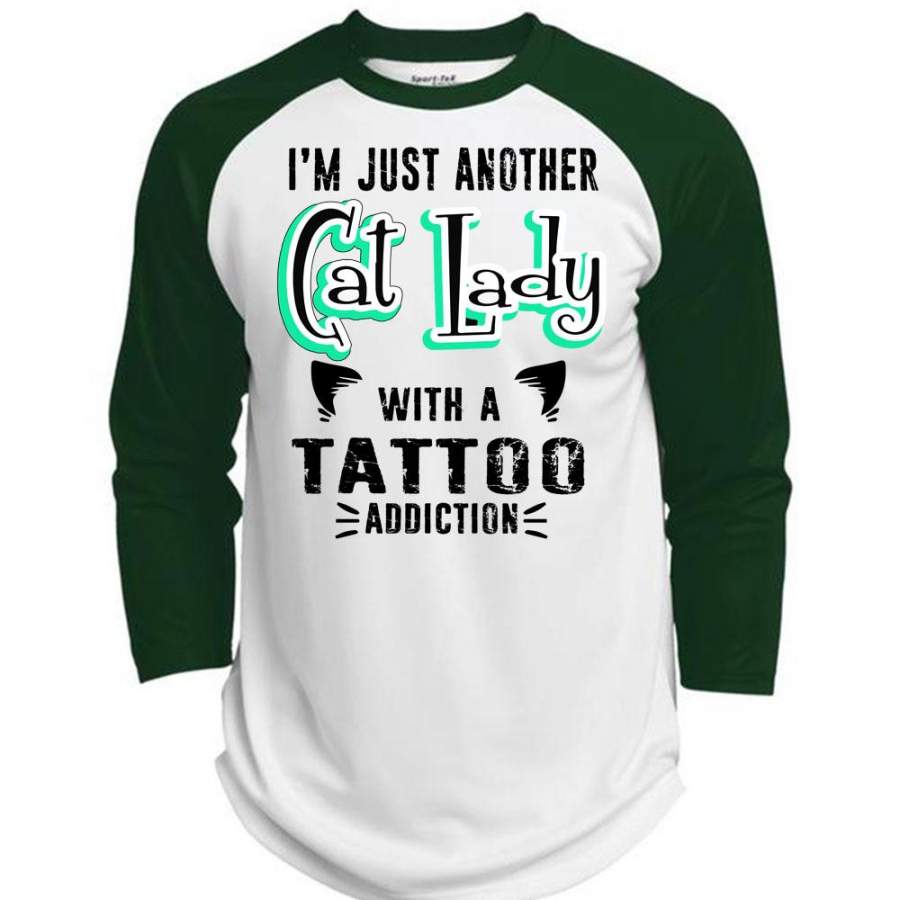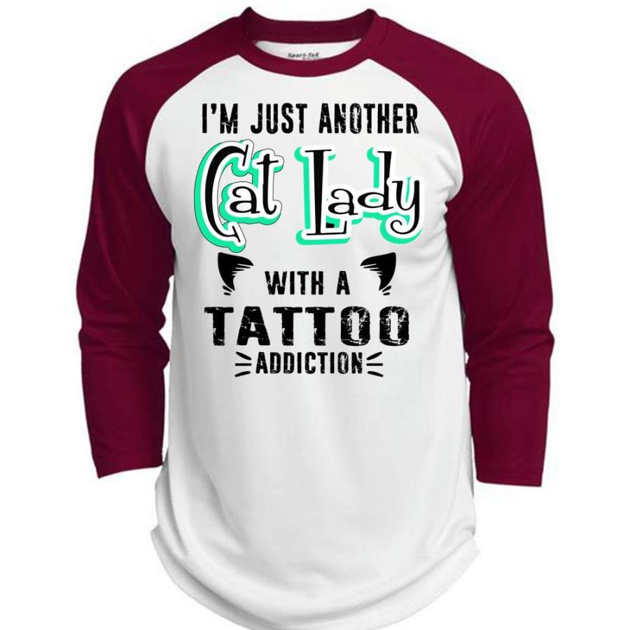 I’m Just Another Cat Lady With Tattoo Addiction T Shirt, I Love Cat T Shirt, Awesome T-Shirts (Polyester Game Baseball Jersey)
