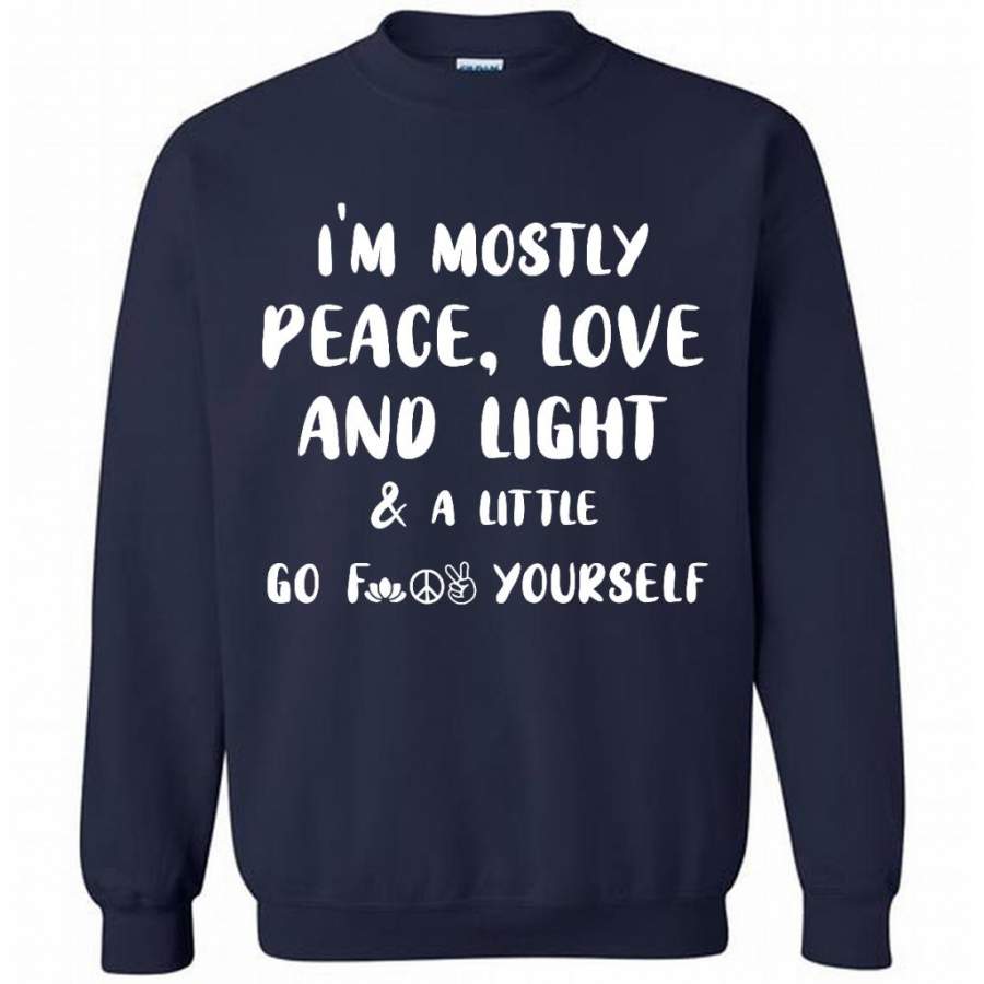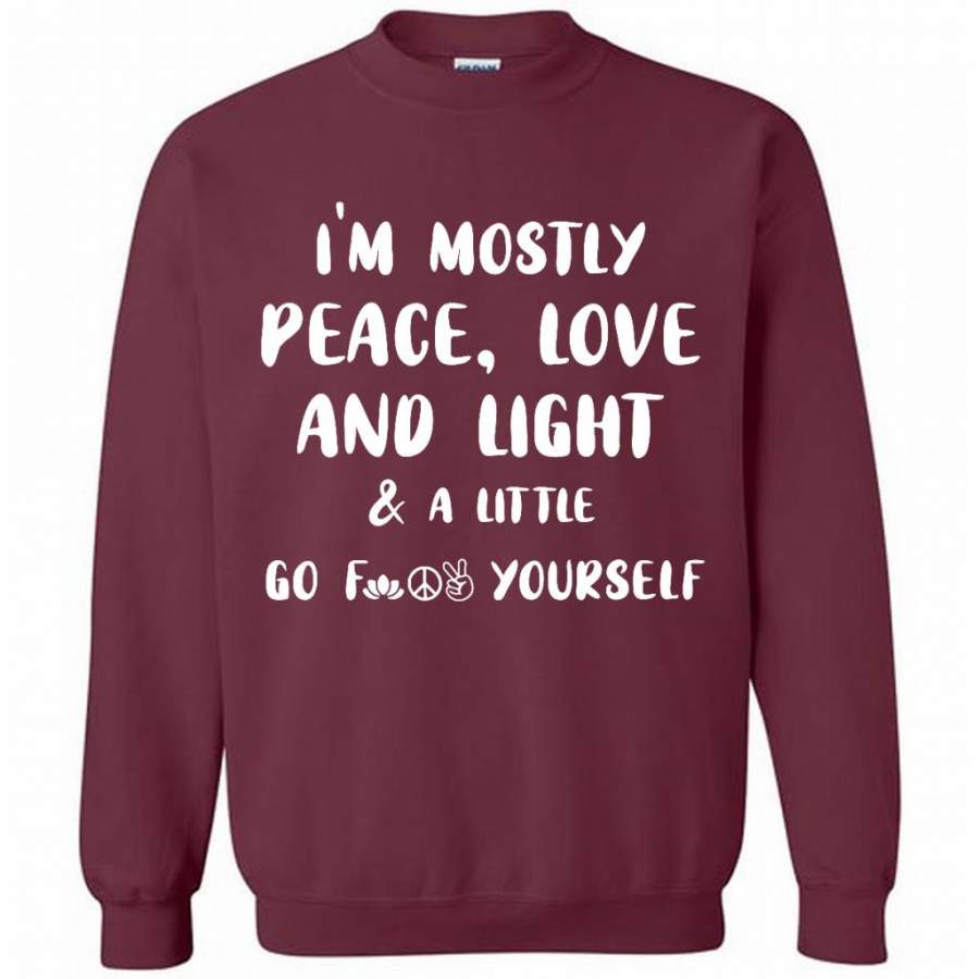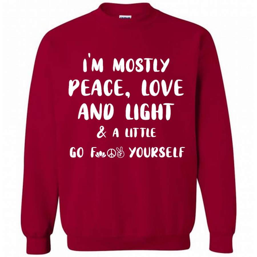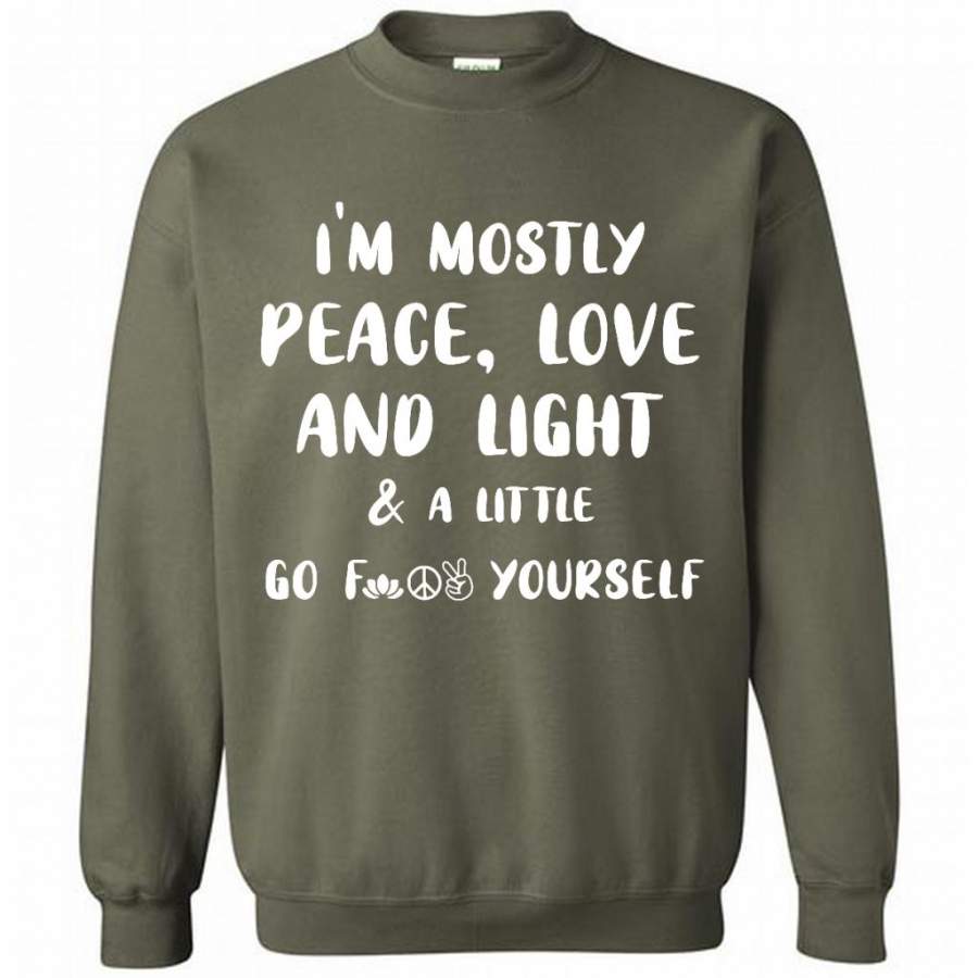 I’m Mostly Peace Love And Light And A Little Go Fuck Yourself, Hippie Life Peace Sign – Gildan Crewneck Sweatshirt