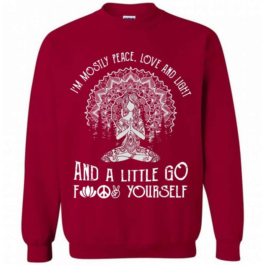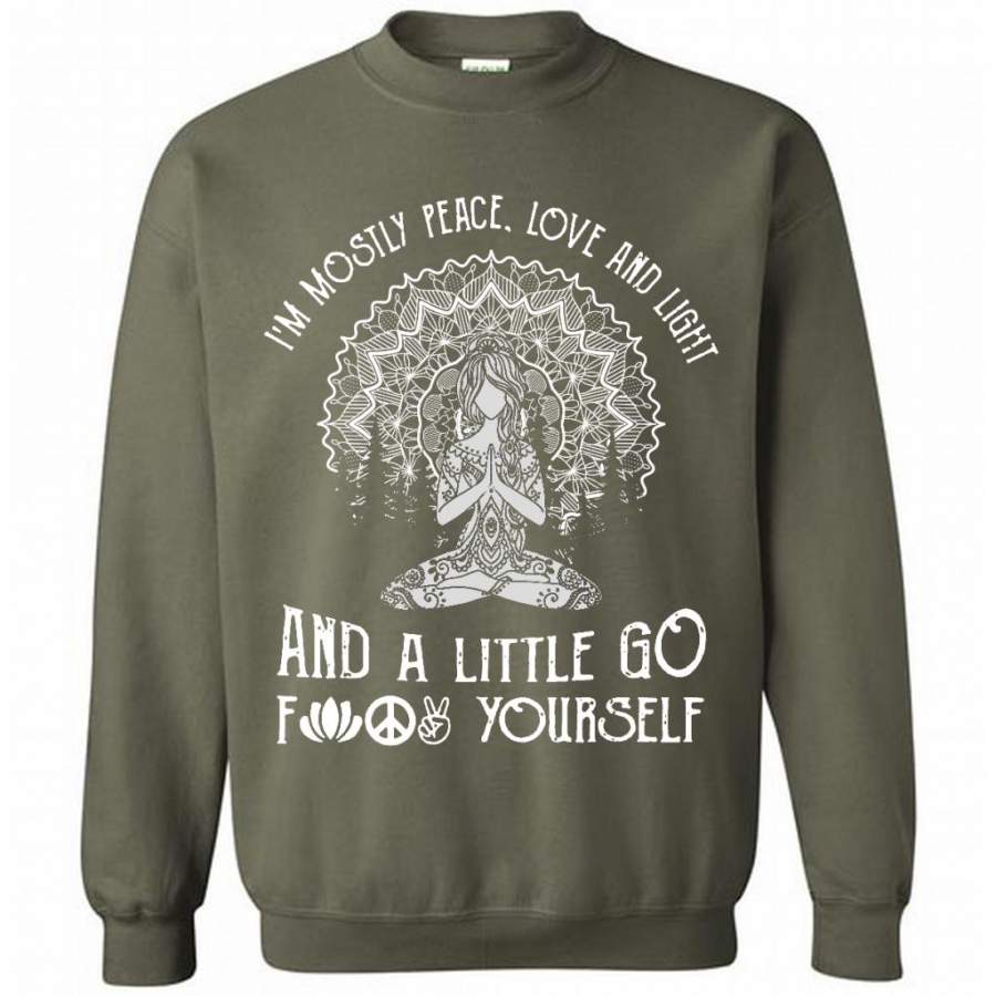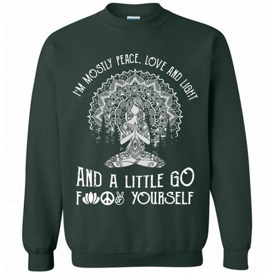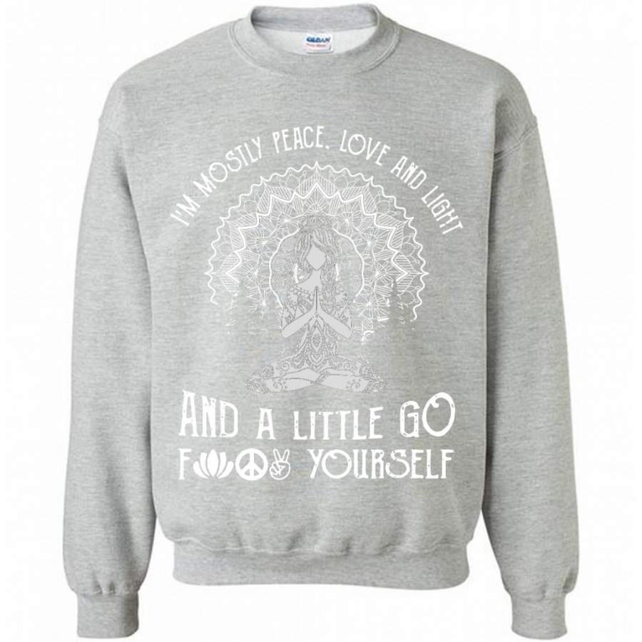 I’m mostly Peace Love And Light And A Little Go Fuck Yourself, Pattern Hippie Yoga Girl – Gildan Crewneck Sweatshirt