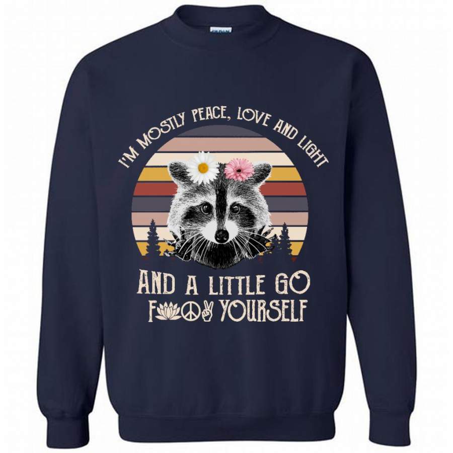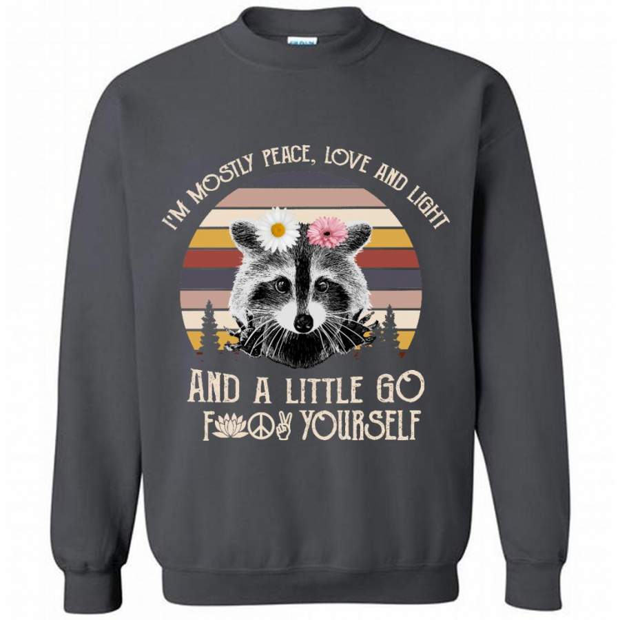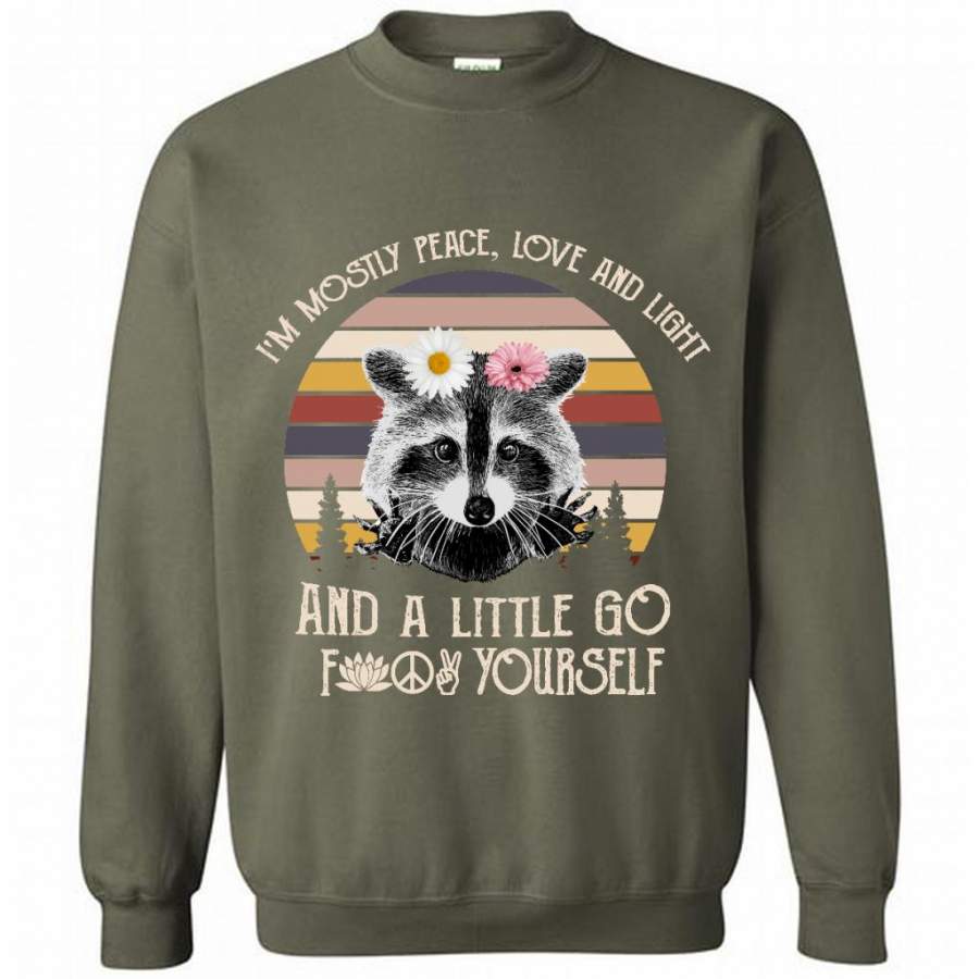 I’m Mostly Peace Love And Light And A Little Go Fuck Yourself, Raccoon Floral Classic Vintage – Gildan Crewneck Sweatshirt