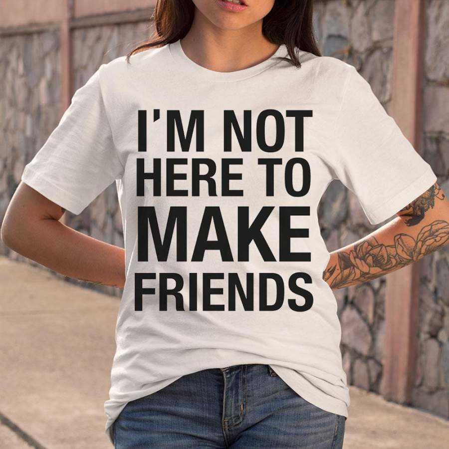 So whether you're looking to show off your own name or create a personalized gift for someone special, LateAndLow Store has got you covered. Start designing your own custom I’m Not Here To Make Friends Shirt print-on-demand product today, and let us bring your vision to life!