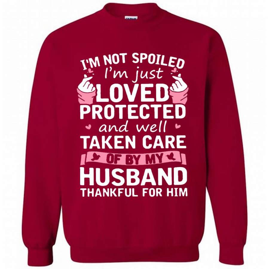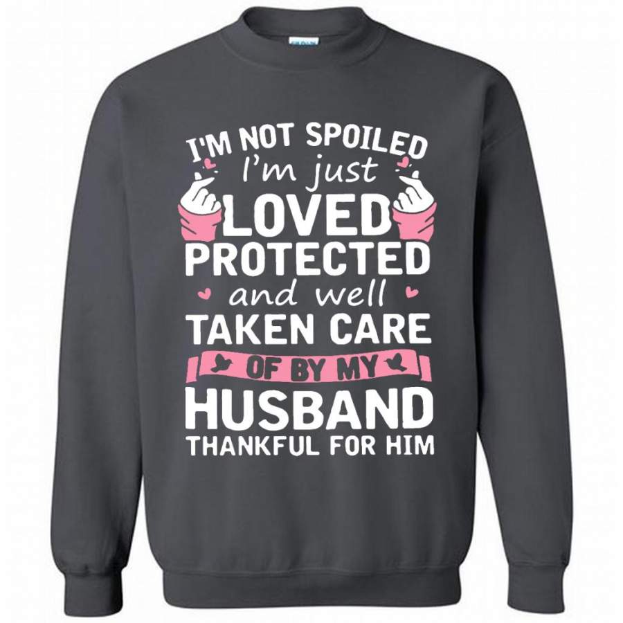 I’m Not Spoiled I’m Just Loved Protected And Well Taken Care Of By My Husband Thankful For Him B – Gildan Crewneck Sweatshirt