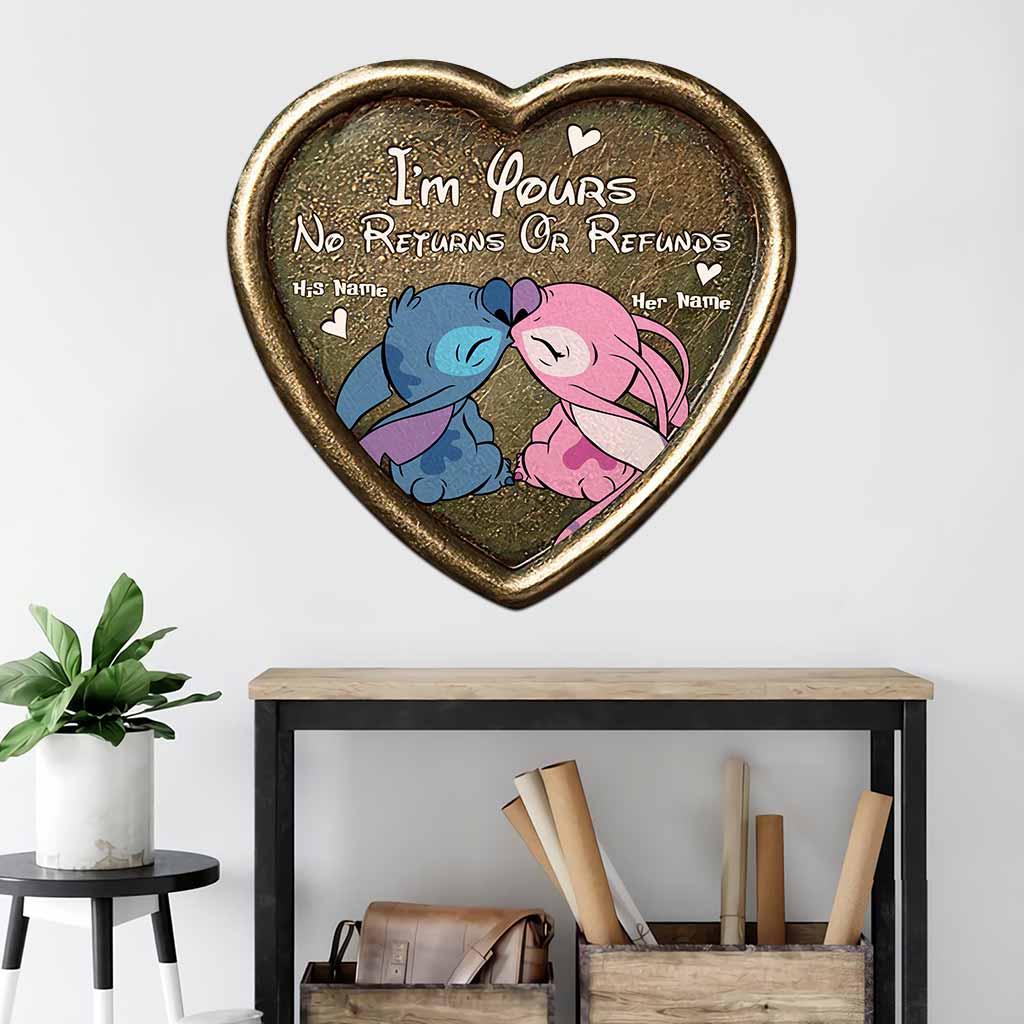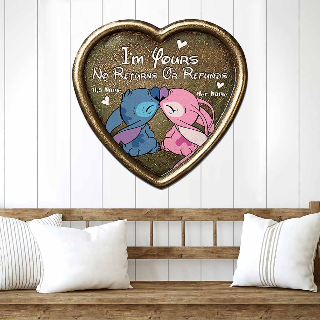 I’M Yours No Returns Or Refunds – Personalized Couple Ohana Cut Metal Sign With 3D Pattern Print