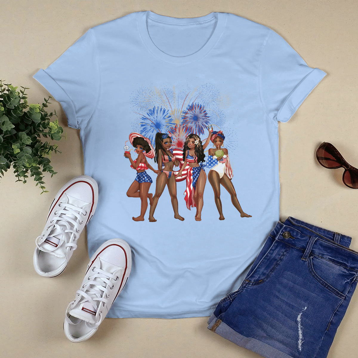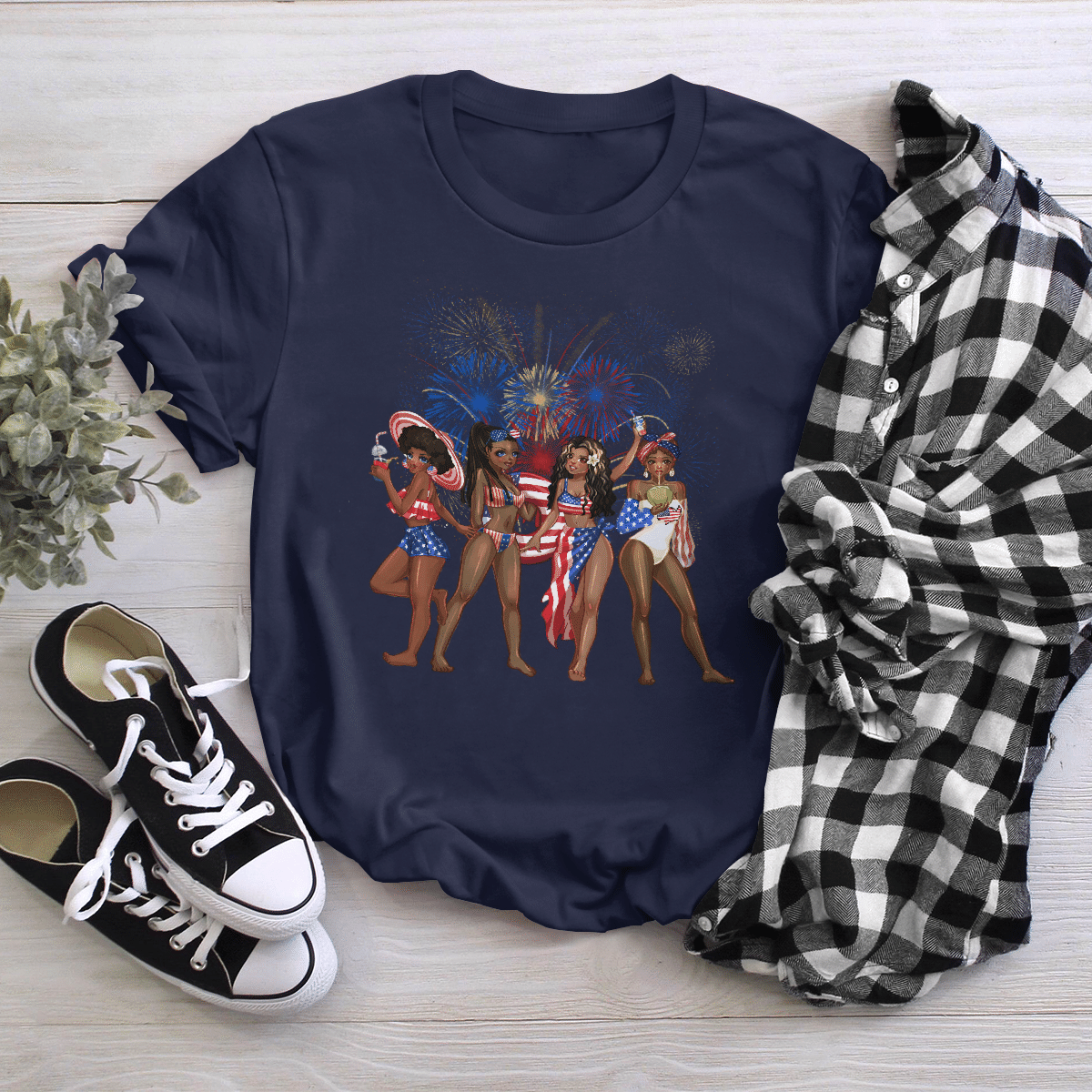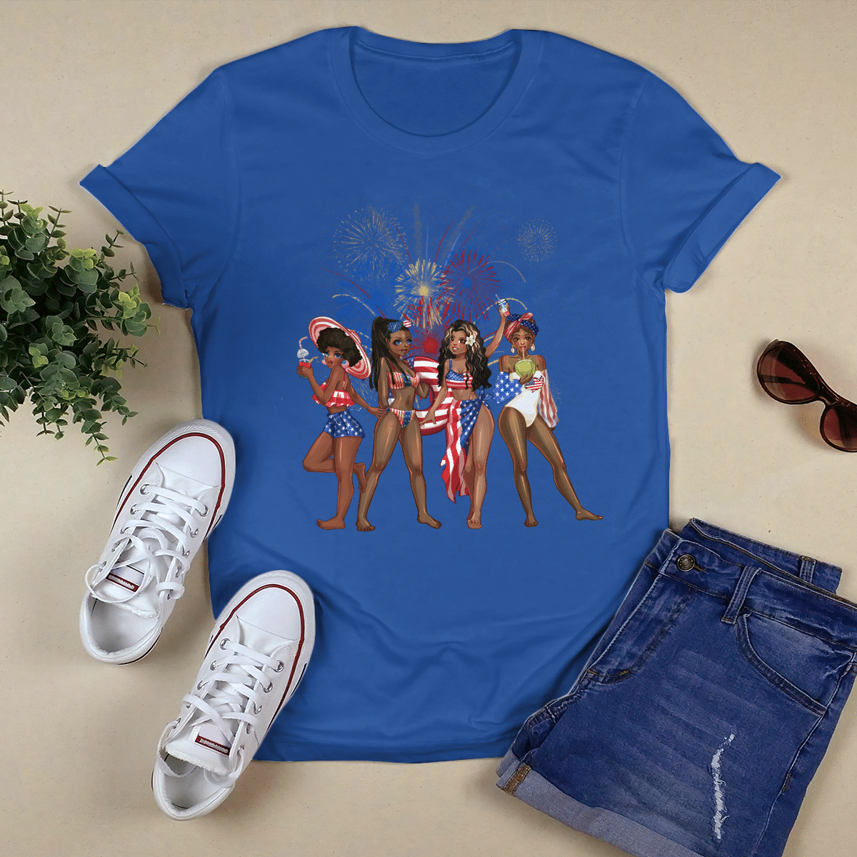 At Cotenis Store, we offer a fantastic range of print-on-demand products that can be personalized with your name. Our Independence Day Girl Friends Shirts print-on-demand products are the perfect way to add a personal touch to your wardrobe or to create a unique and thoughtful gift for someone special.