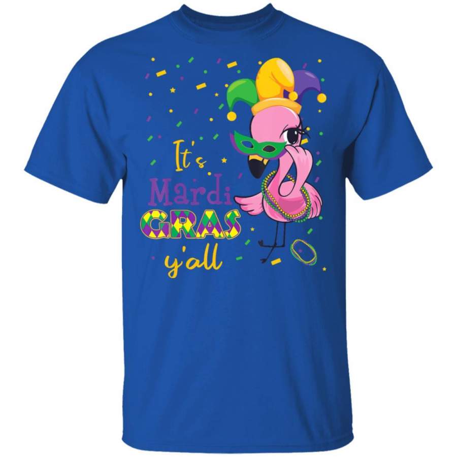 It’s Mardi Gras Y’all Cute Flamingo Jester Hat Mask Beads T Shirt Costume Mask T-Shirt Fat Tuesday Tshirt Carnival Festival Tee Friends Shirts