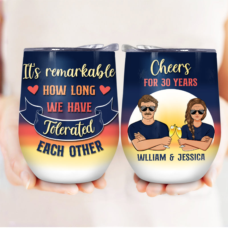 Our print-on-demand products are made with the highest quality materials, ensuring that your personalized It’S Remarkable – Gift For Married Couples – Personalized Custom Wine Tumbler design looks great and feels comfortable. You can wear your new custom product with pride or give it as a unique and memorable gift that will be cherished for years to come.