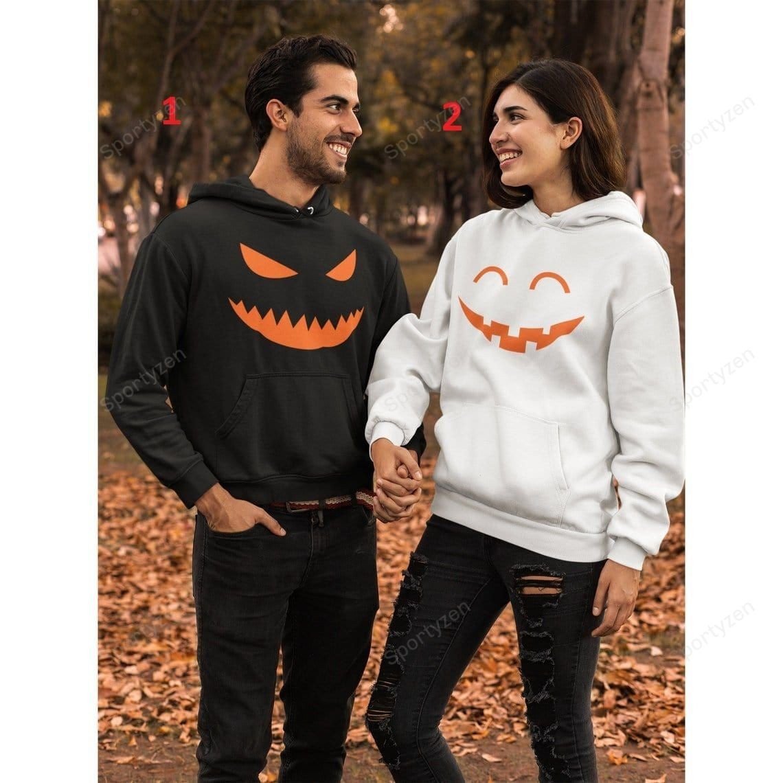 At Cotenis Store, we offer a fantastic range of print-on-demand products that can be personalized with your name. Our Jack O Lantern His And Hers Pumpkin Face Halloween Couple Hoodie print-on-demand products are the perfect way to add a personal touch to your wardrobe or to create a unique and thoughtful gift for someone special.