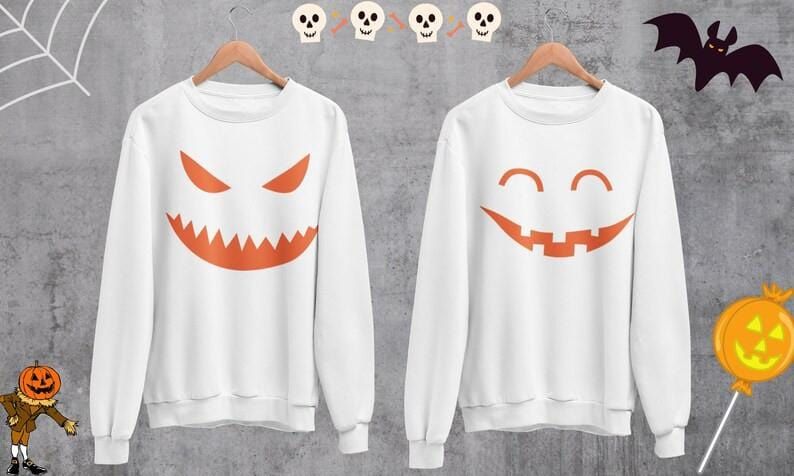 Jack O Lantern His And Hers Pumpkin Face Halloween Couple Sweatshirt