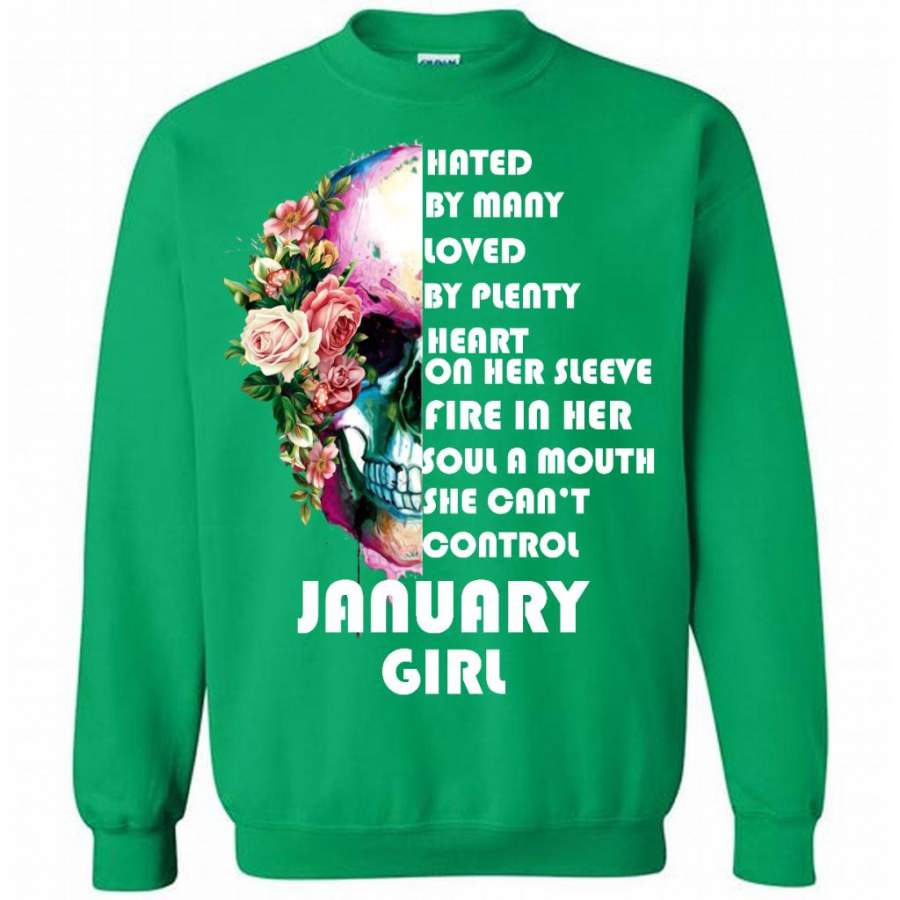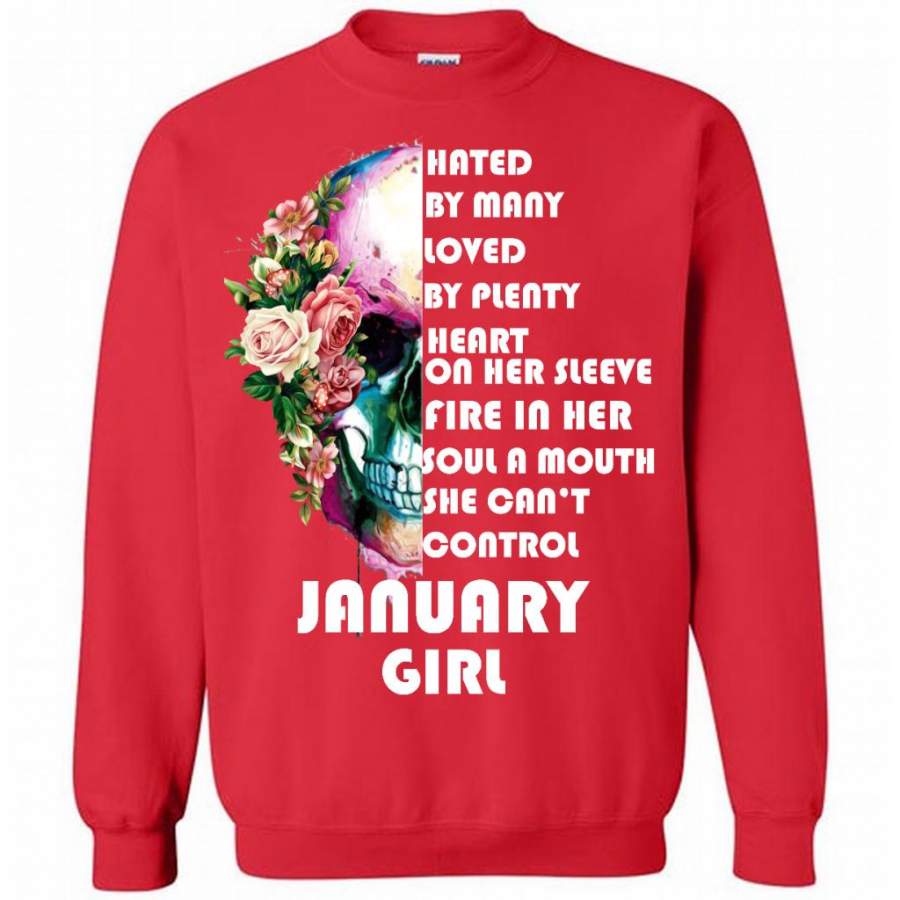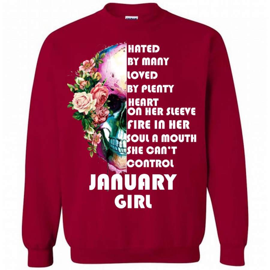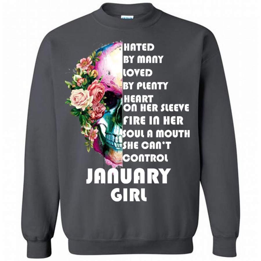 January Girl, Hated By Many Loved By Plenty Heart On Her Sleeve Fire In Her Soul A Mouth She Can’t Control – Gildan Crewneck Sweatshirt
