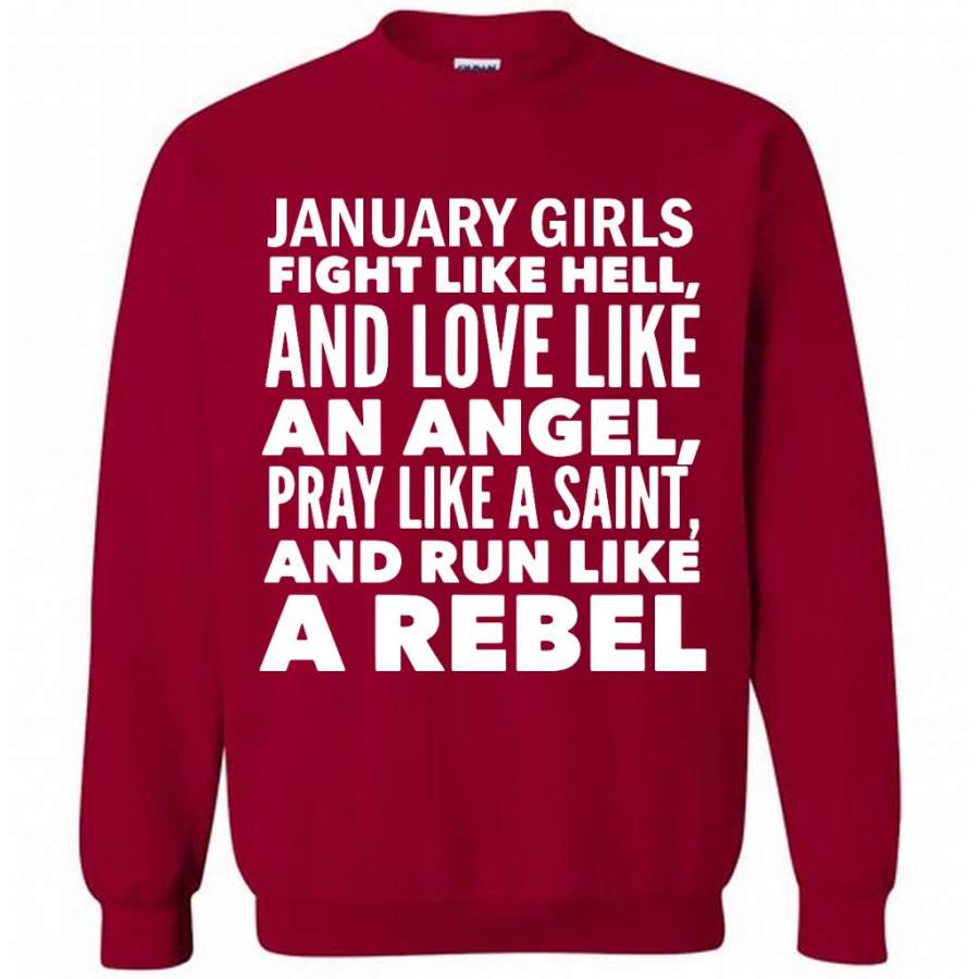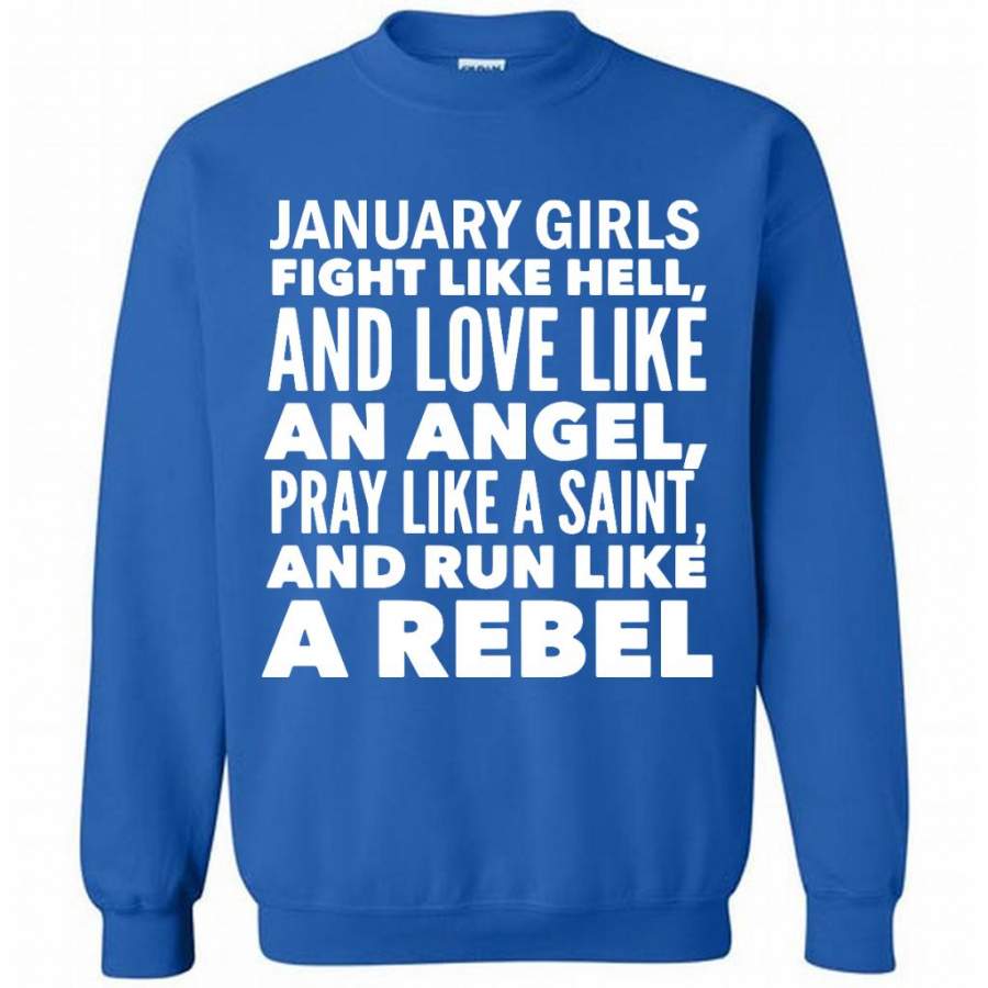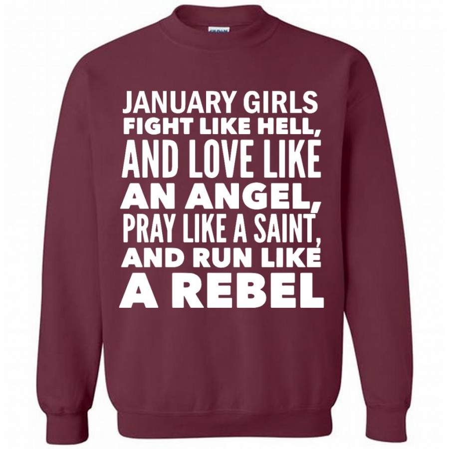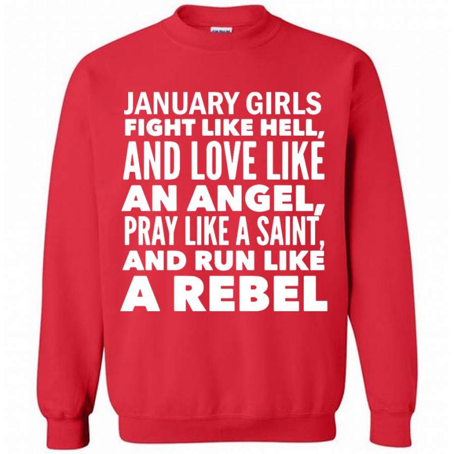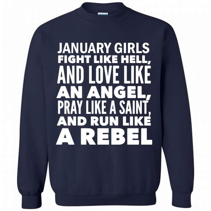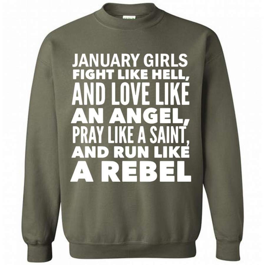 January Girls Fight Like Hell And Love Like An Angel Pray Like A Saint And Run Like A Rebel – Gildan Crewneck Sweatshirt