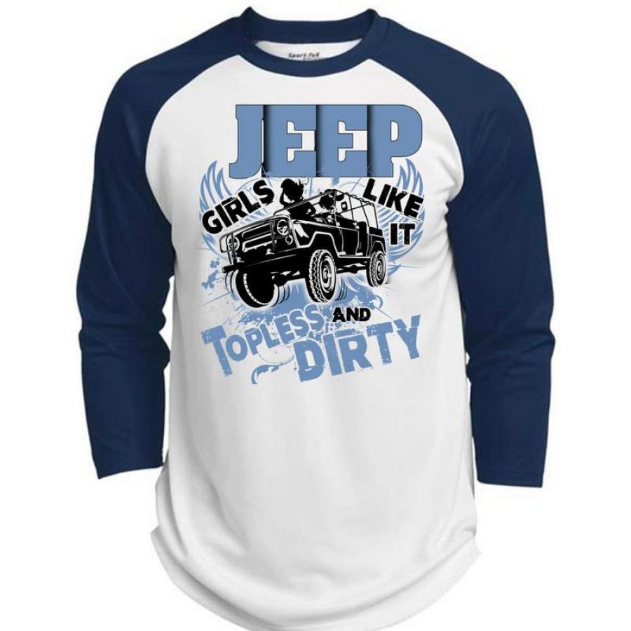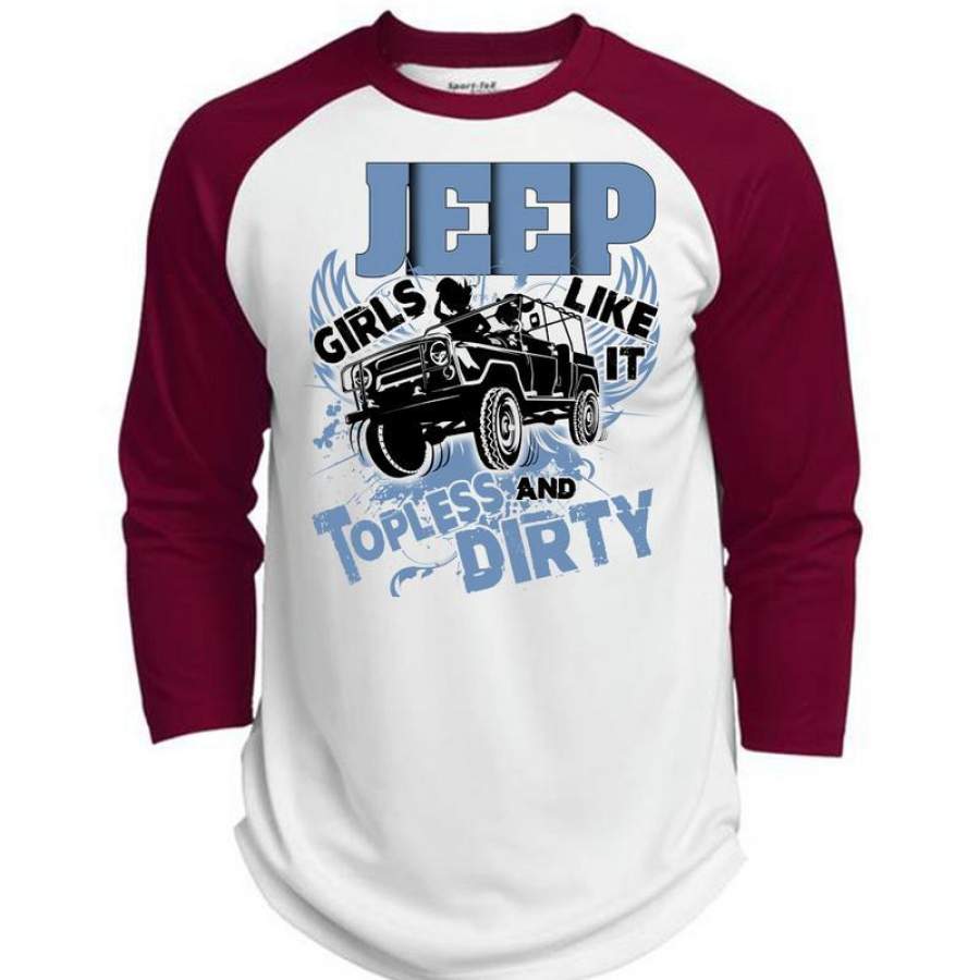 Jeep Girls Like It Topless And Dirty T Shirt, I Love Jeep T Shirt, Awesome T-Shirts (Polyester Game Baseball Jersey)