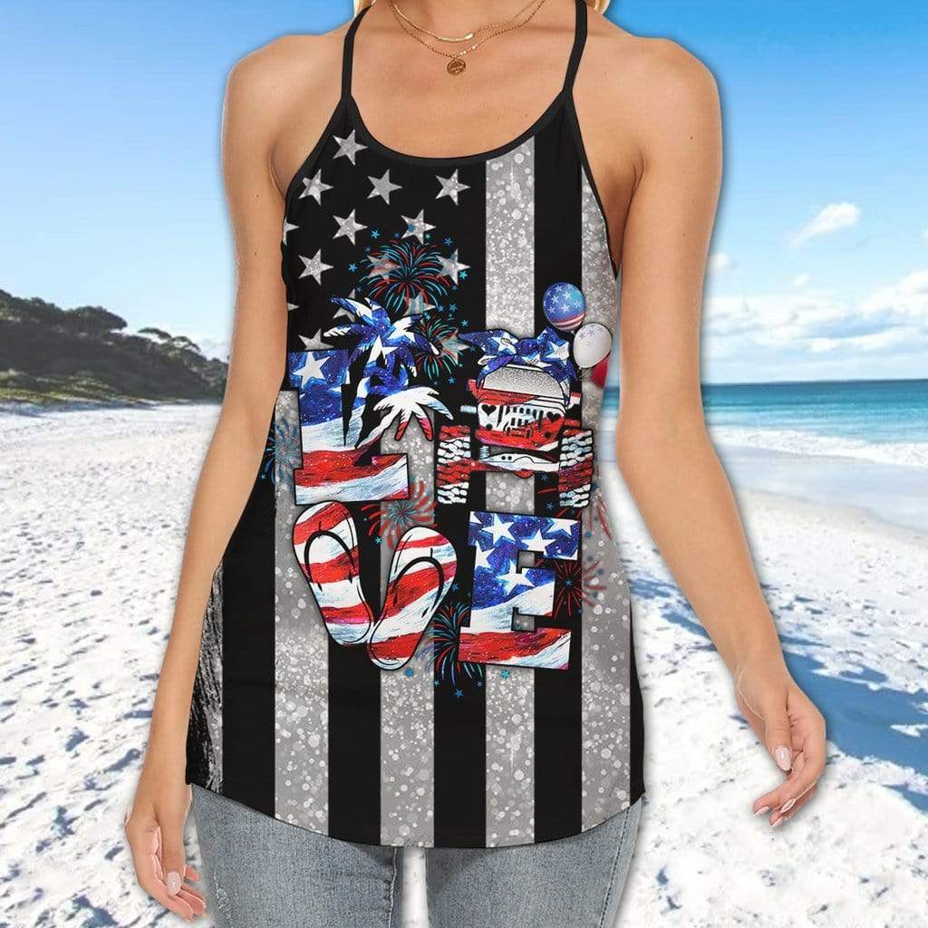 So whether you're looking to show off your own name or create a personalized gift for someone special, LateAndLow Store has got you covered. Start designing your own custom Jeep Independence Day Love Heartbeat Cross Tank Top – Legging 3D print-on-demand product today, and let us bring your vision to life!