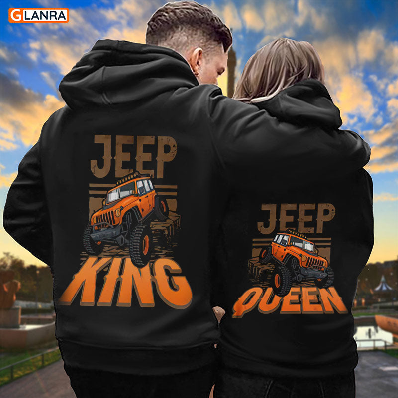 Jeep King Jeep Queen Hoodie, Jeep Couple Hoodie, Valentine Matching Couple Hoodie, Husband Wife Hoodie, Unisex Sweater, Sweatshirt