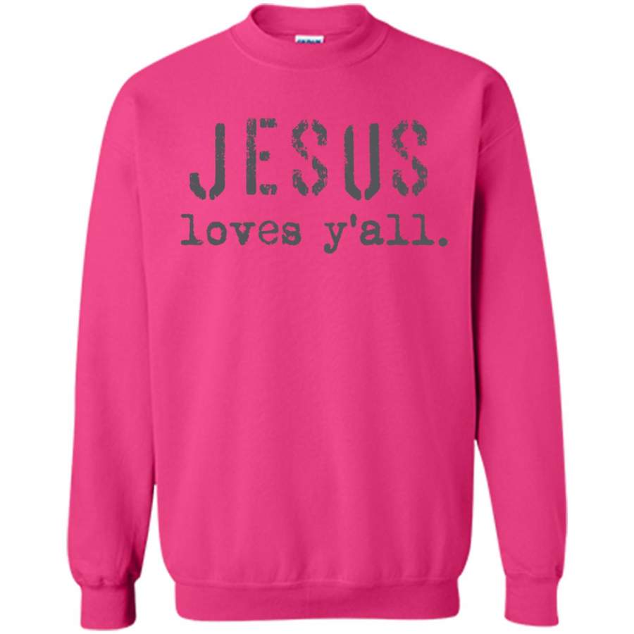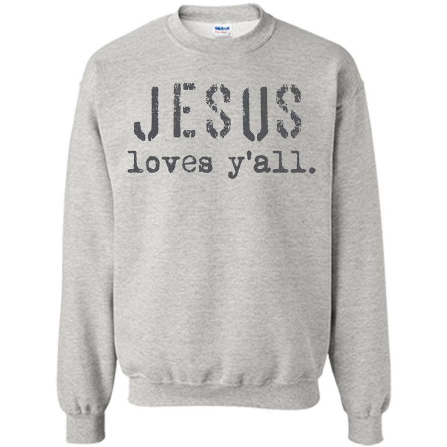 Jesus Loves Y’all Love God – Gildan Crewneck Sweatshirt