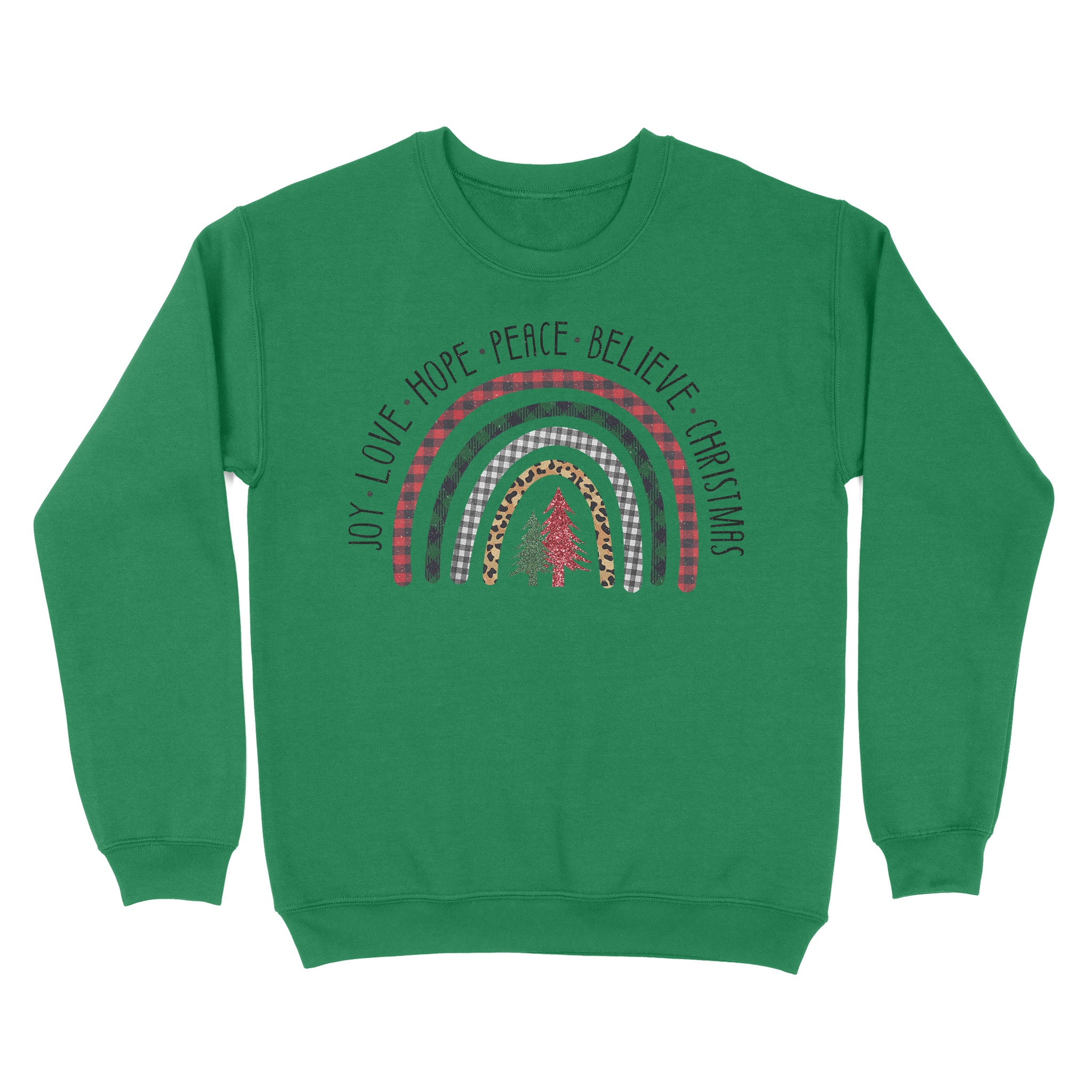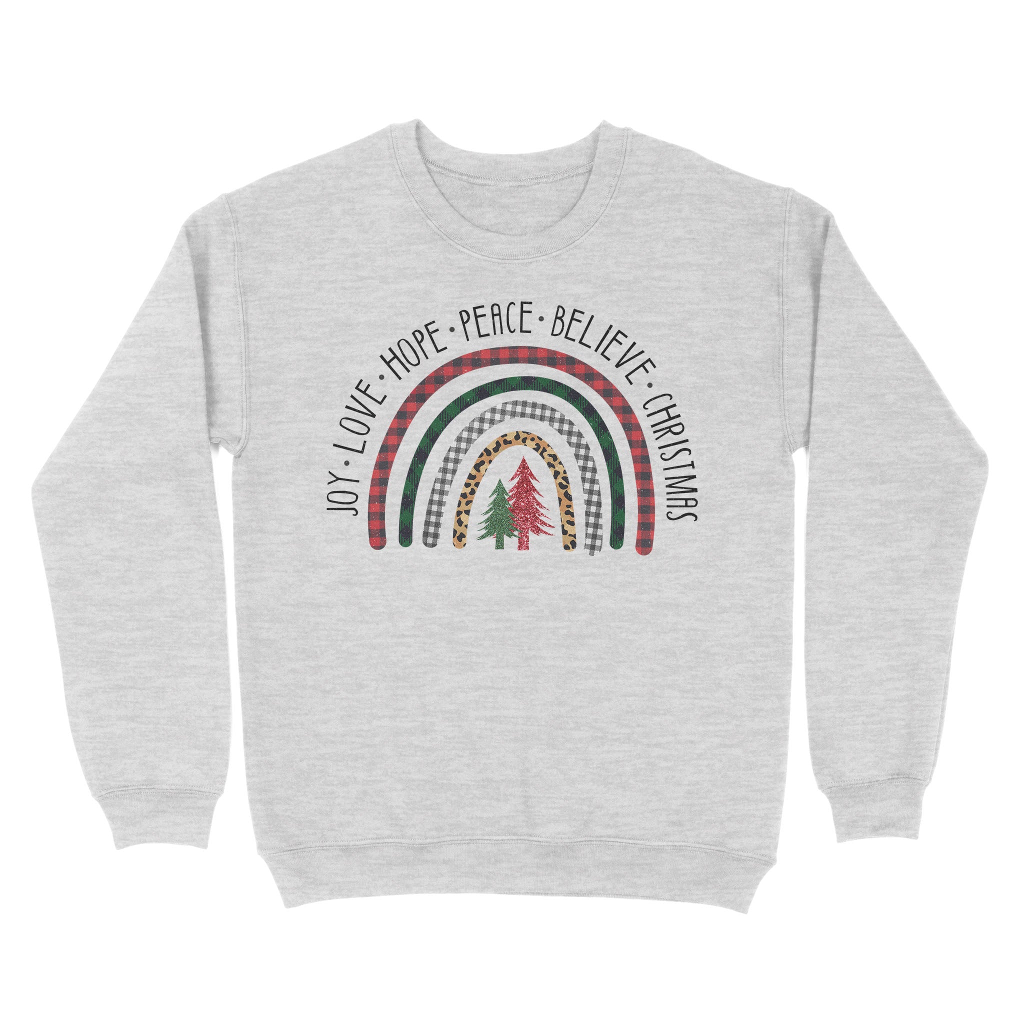 Joy Love Hope Peace Believe Christmas Cute Sweatshirt, Rainbow Christmas Tree Shirts Ffs – Iphw1936