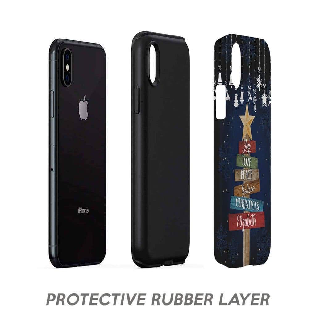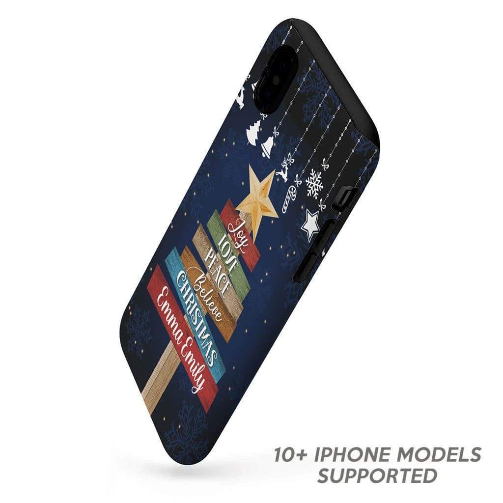Joy Love Peace Believe Christmas Personalized Name Phone Case – Tough Case