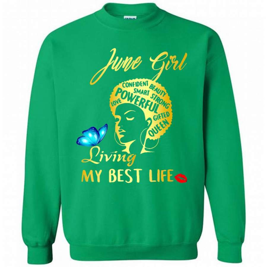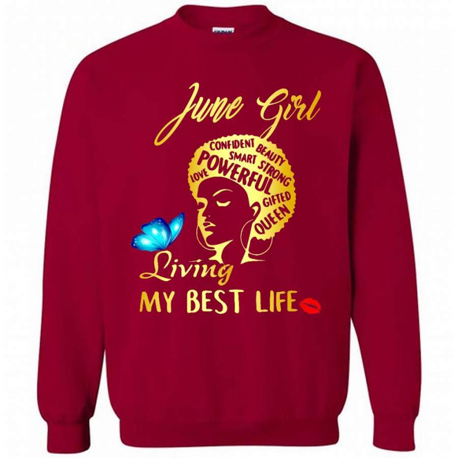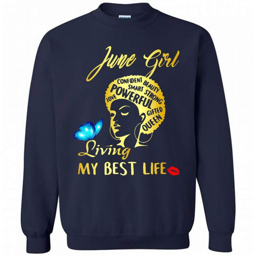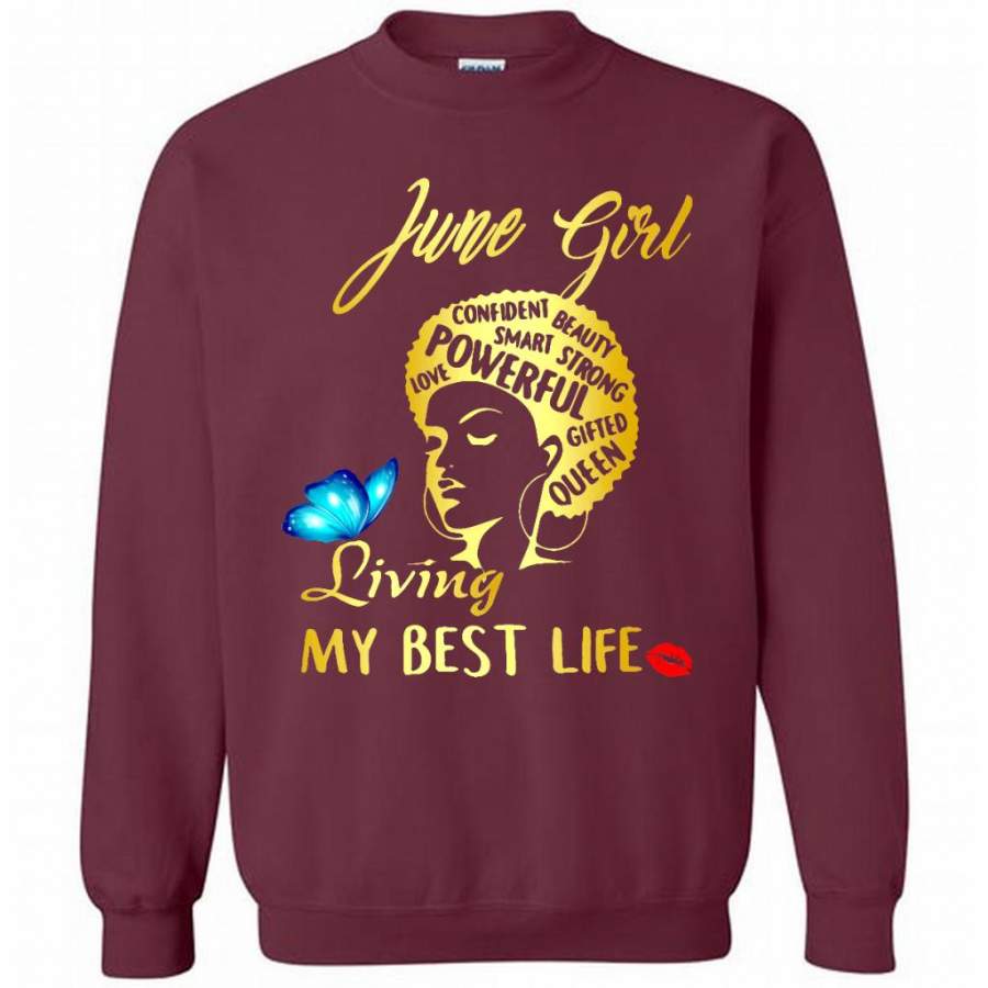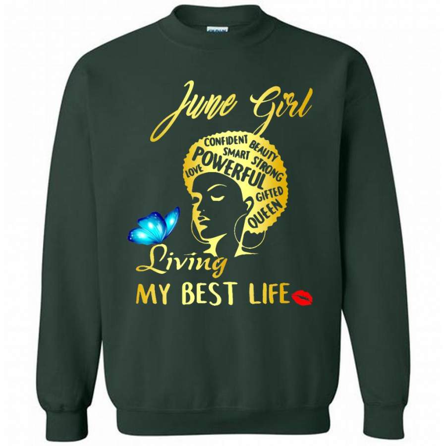 June Girl Living My Best Life Confident Beauty Smart Strong Powerful Love Gifted Queen – Gildan Crewneck Sweatshirt
