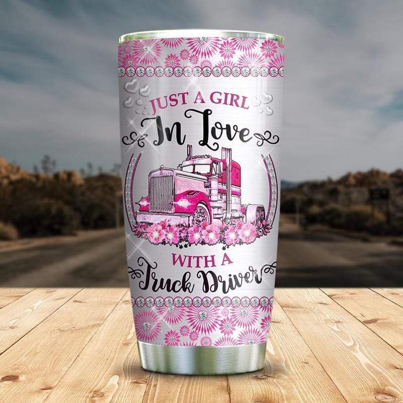 Just a girl in love with a Truck Driver Silver Steel Tumbler with Your Name #KV