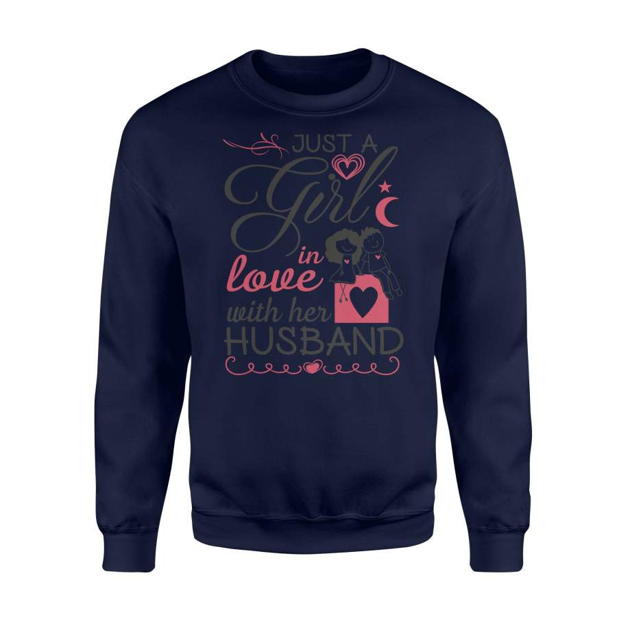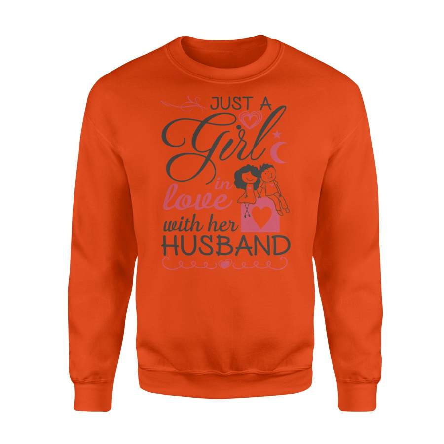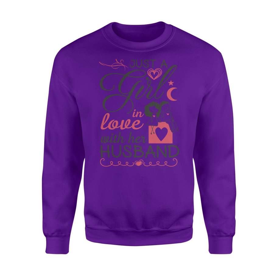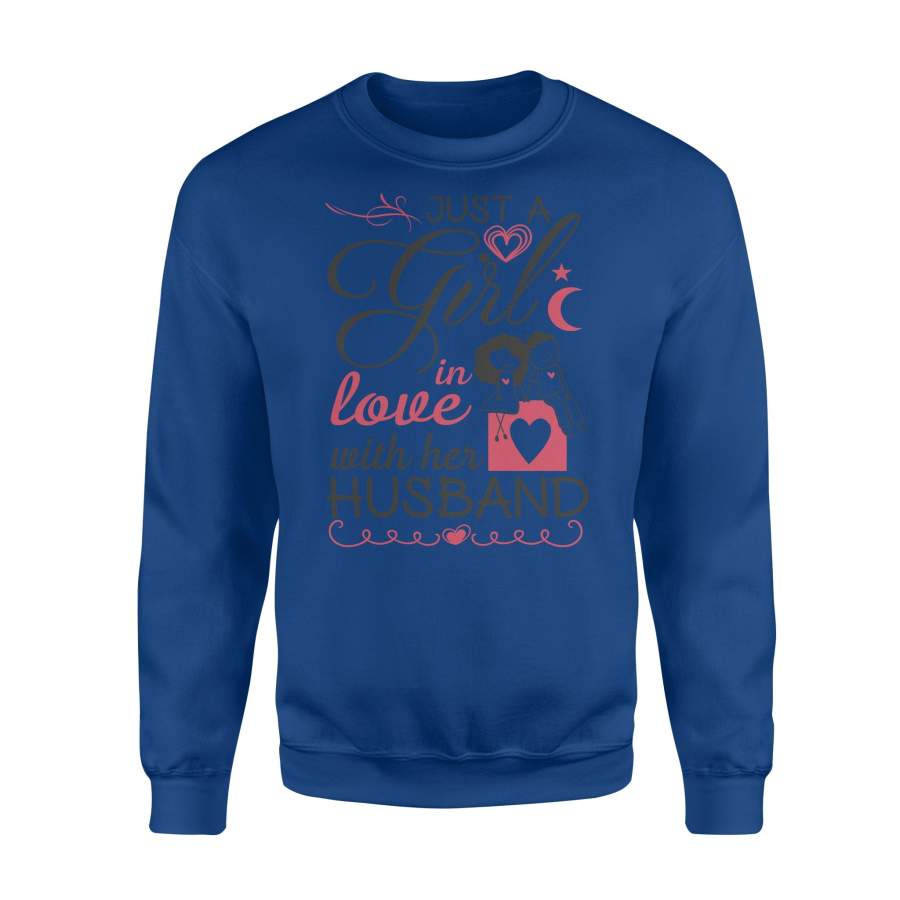 So whether you're looking to show off your own name or create a personalized gift for someone special, LateAndLow Store has got you covered. Start designing your own custom Just A Girl In Love With Her Husband – Sweatshirt print-on-demand product today, and let us bring your vision to life!