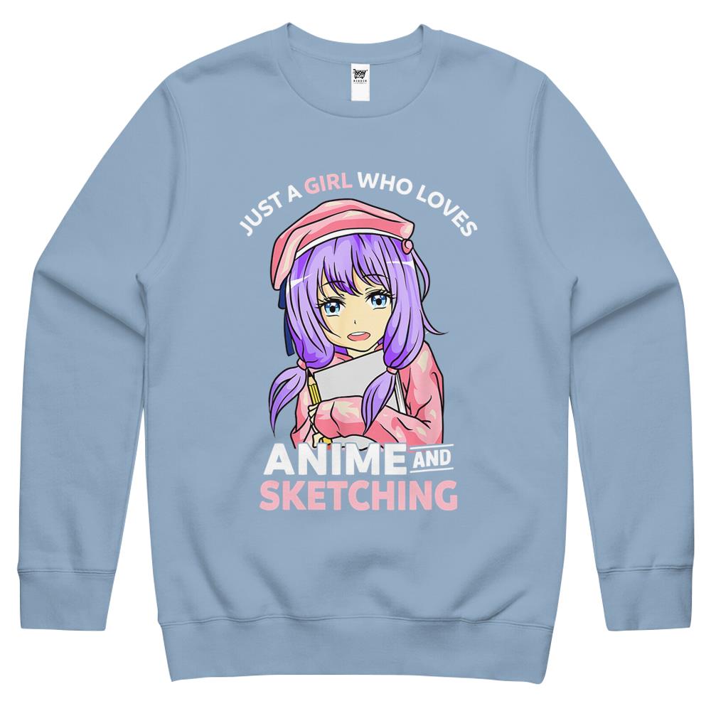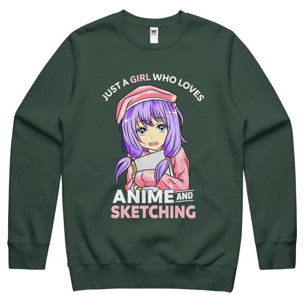 So whether you're looking to show off your own name or create a personalized gift for someone special, LateAndLow Store has got you covered. Start designing your own custom Just A Girl Who Loves Anime And Sketching Anime Teen Girl Crewneck Sweatshirt print-on-demand product today, and let us bring your vision to life!