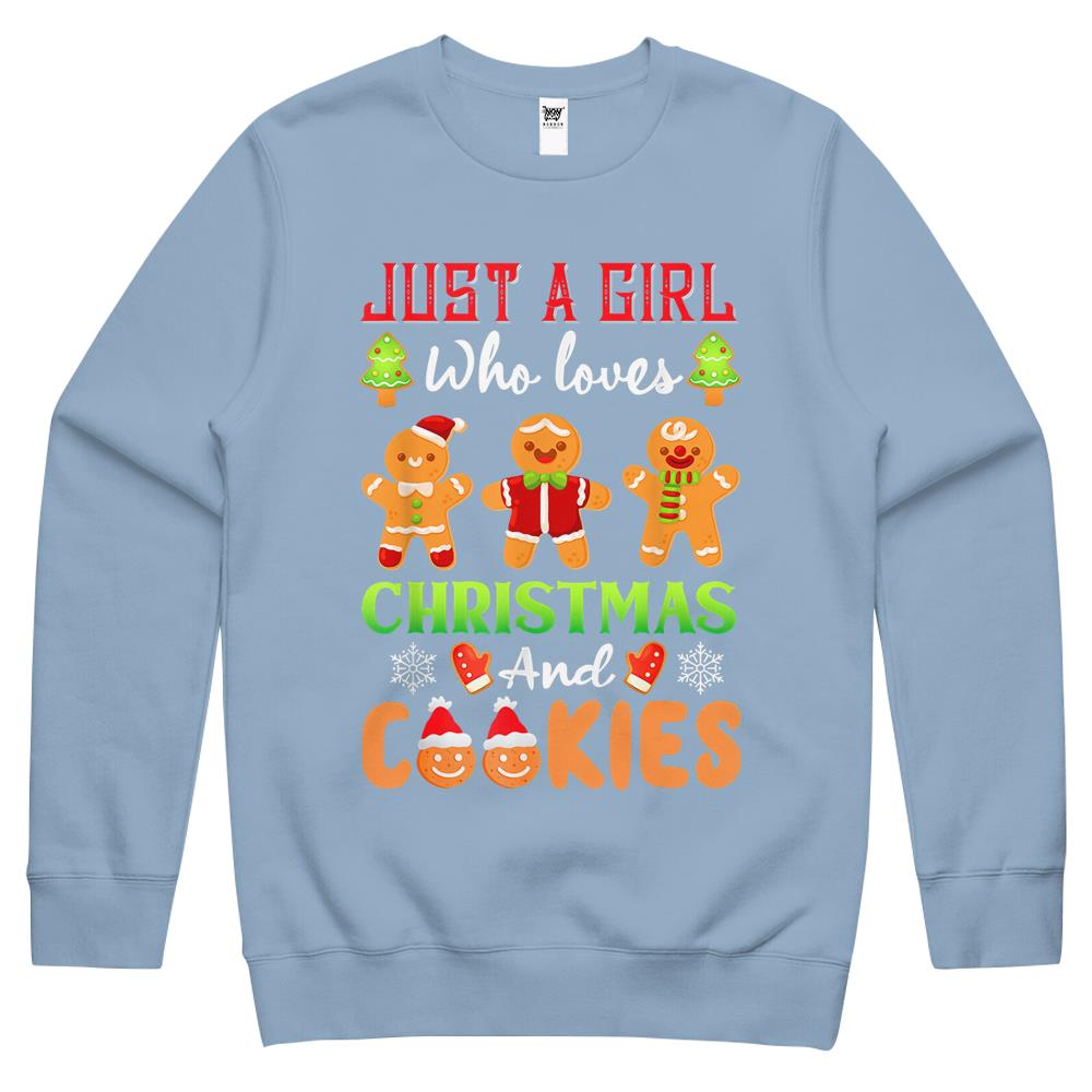 Just A Girl Who Loves Christmas And Biscuits Crewneck Sweatshirt