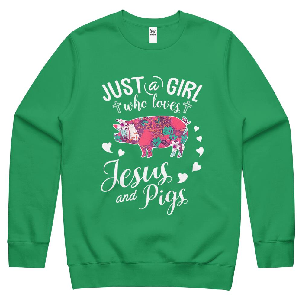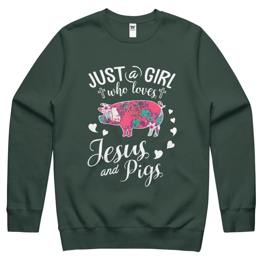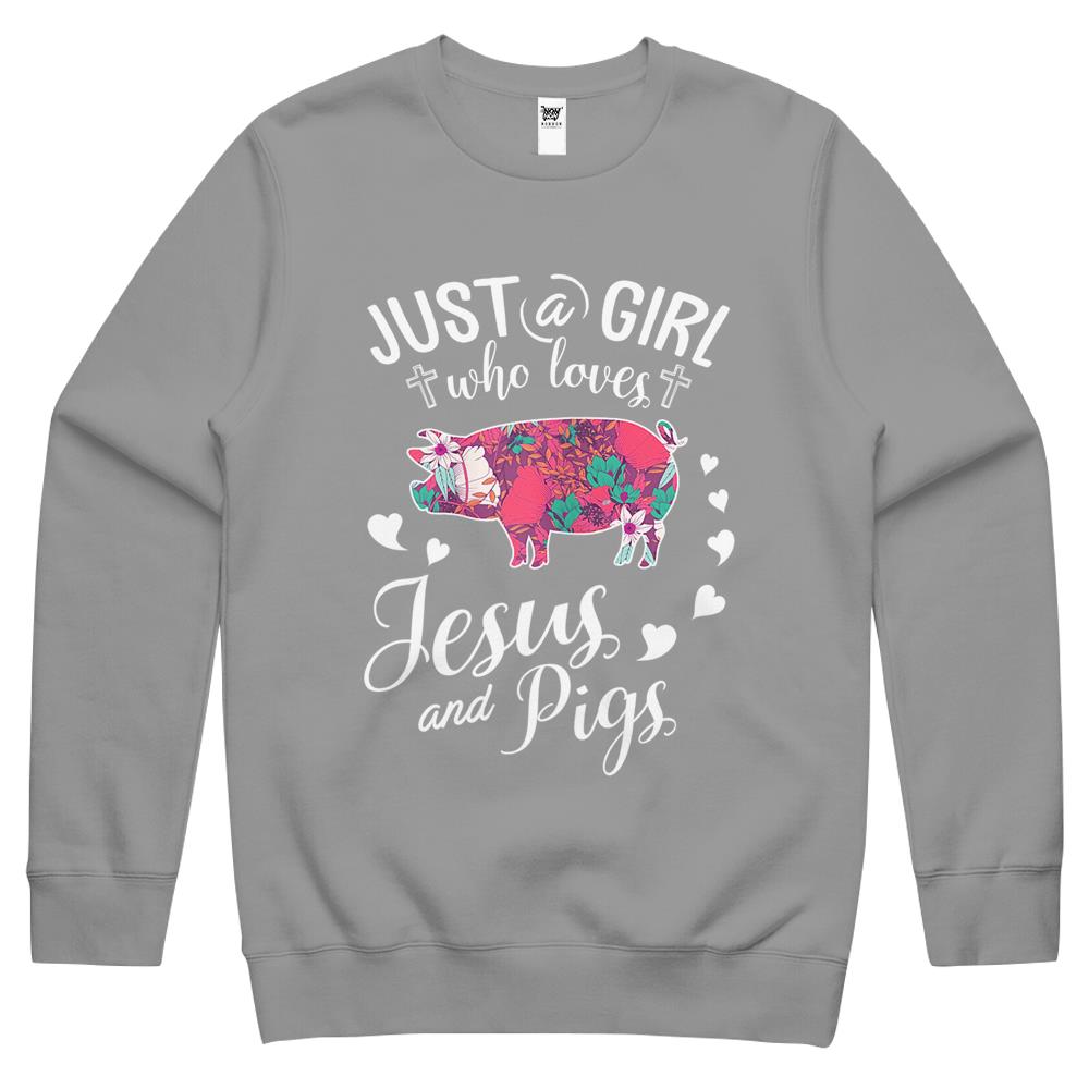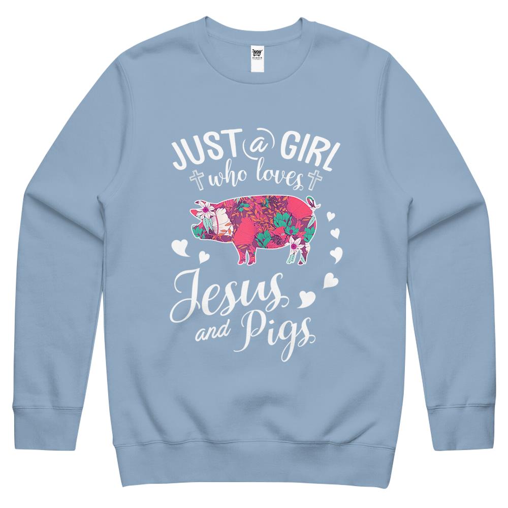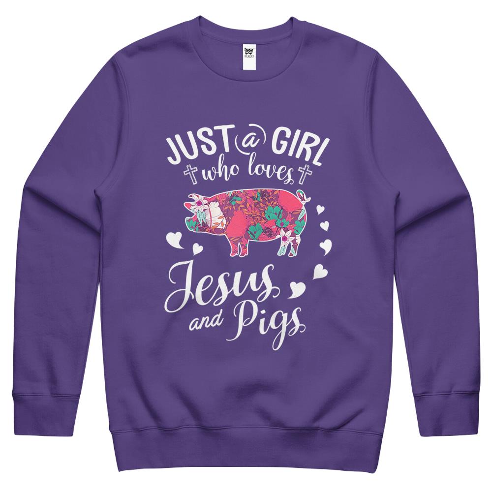 Just A Girl Who Loves Jesus And Pigs Crewneck Sweatshirt Farmer Lover Crewneck Sweatshirt