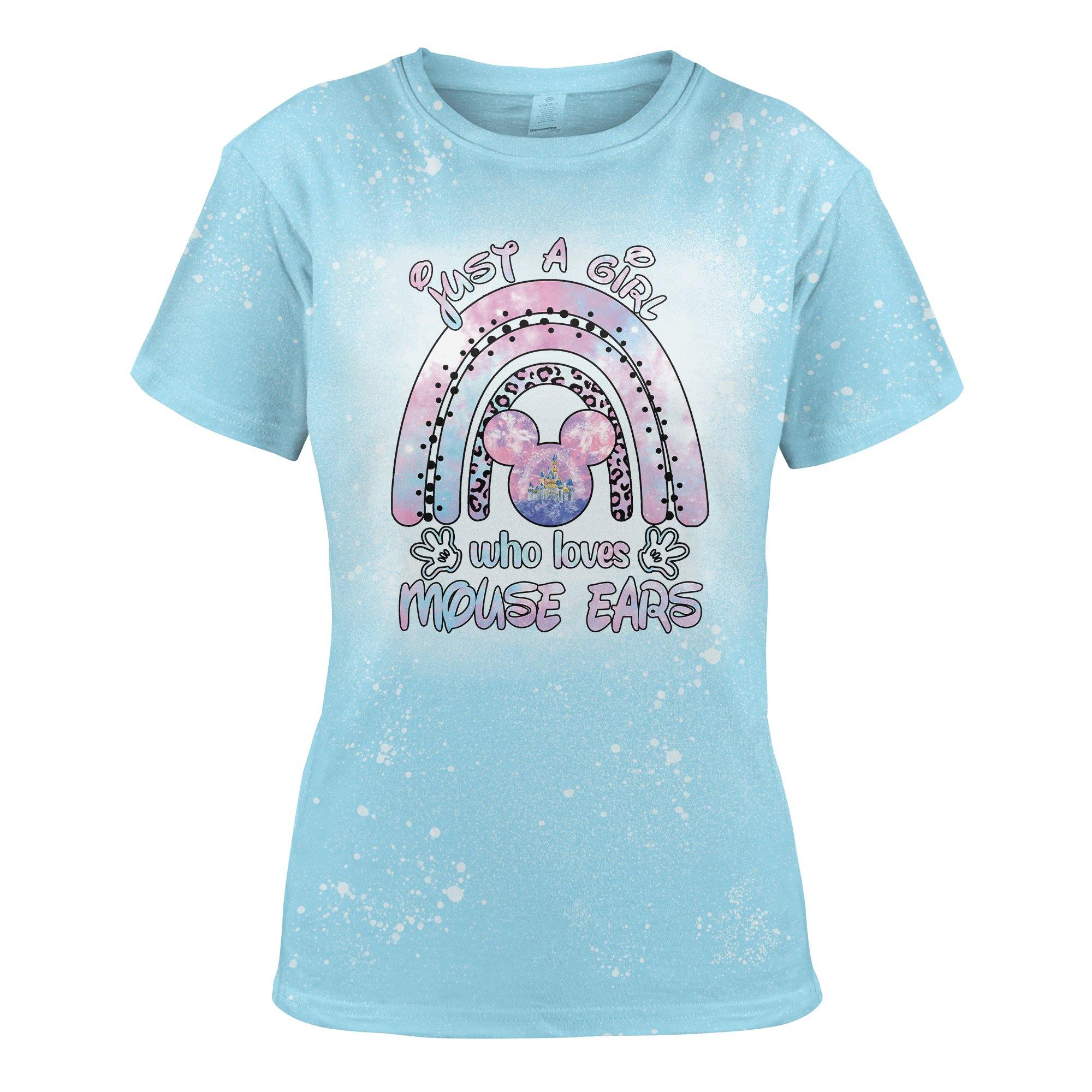 So whether you're looking to show off your own name or create a personalized gift for someone special, LateAndLow Store has got you covered. Start designing your own custom Just A Girl Who Loves Mouse Ears 2D Bleached Woman T-Shirt print-on-demand product today, and let us bring your vision to life!
