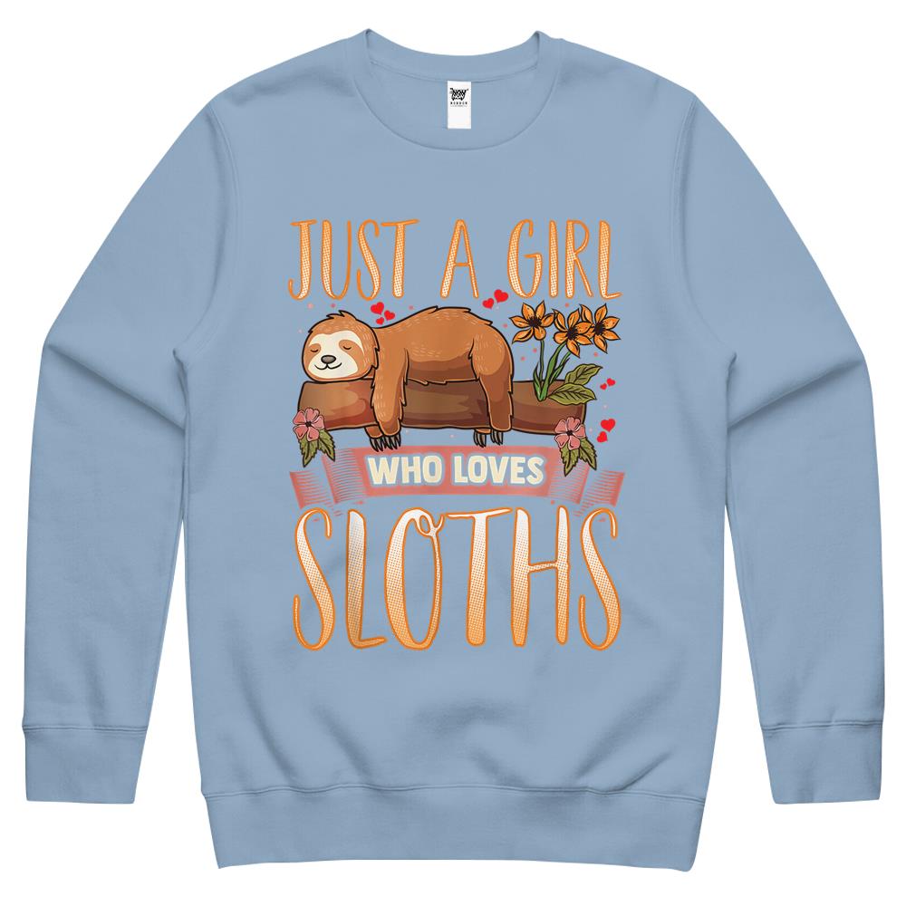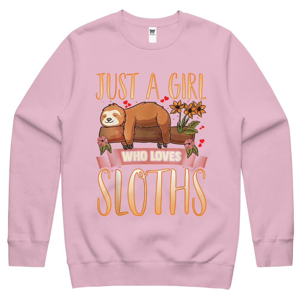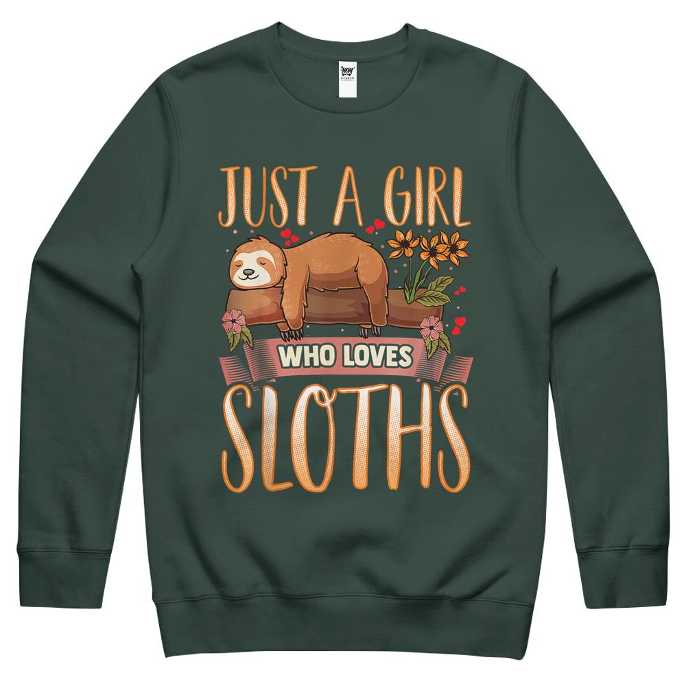 Just A Girl Who Loves Sloths Gift Cute Sloth Lover Mom Kids Crewneck Sweatshirt