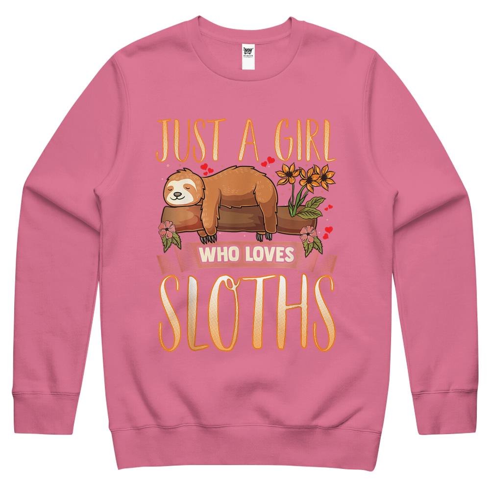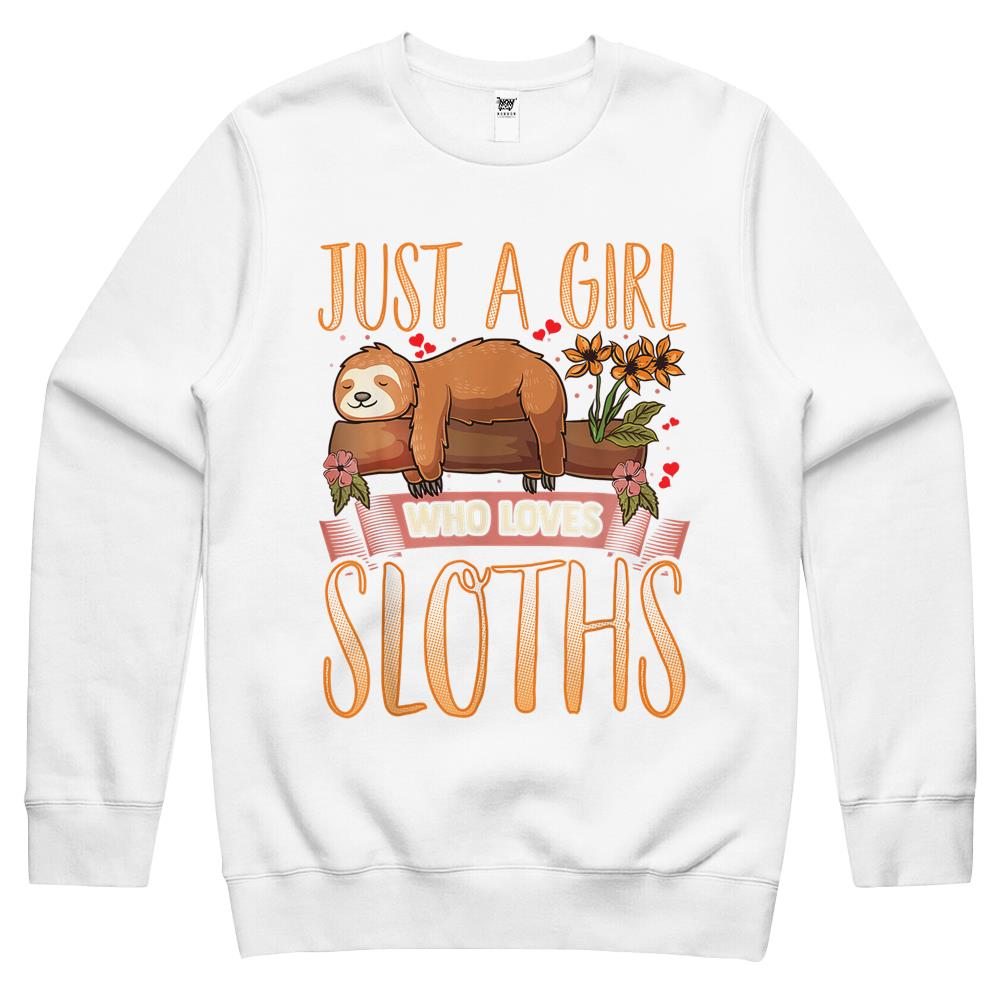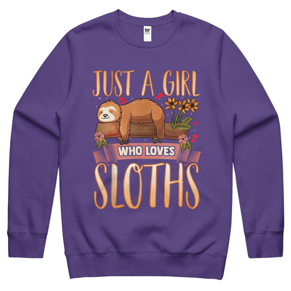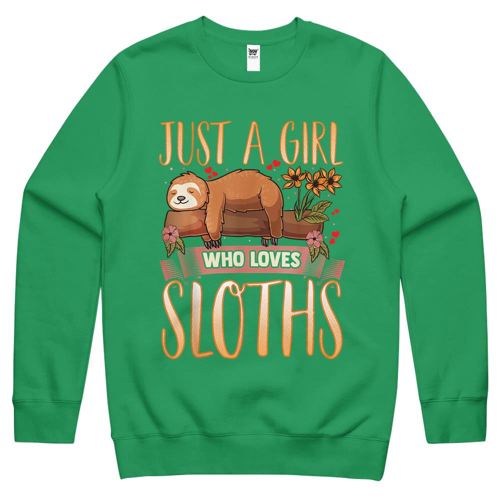 Just A Girl Who Loves Sloths Gift Cute Sloth Lover Mom Kids Crewneck Sweatshirt