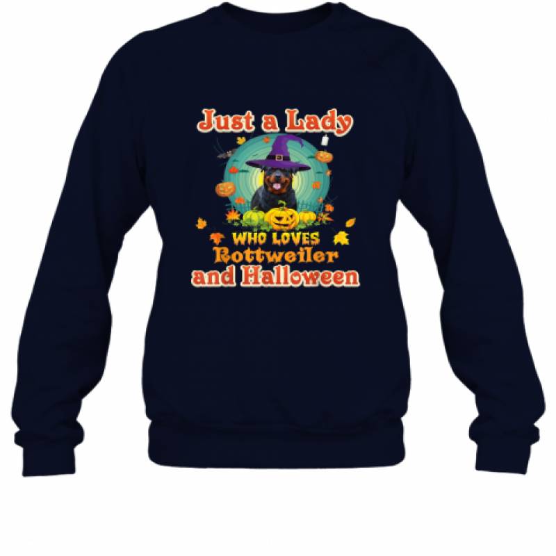 Just A Lady Who Loves Rottweiler Dog And Halloween Witch shirt Sweatshirt