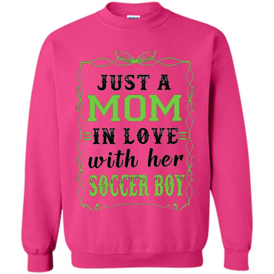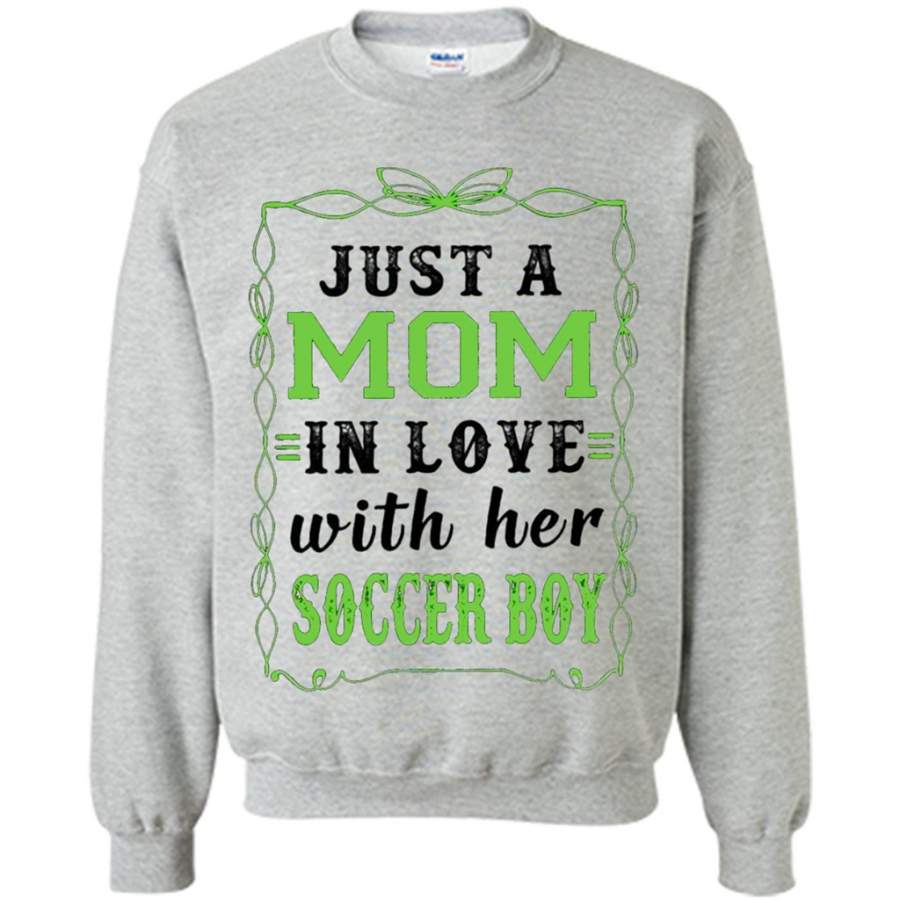Just A Mom In Love With Her Soccer Boy (w) – Gildan Crewneck Sweatshirt