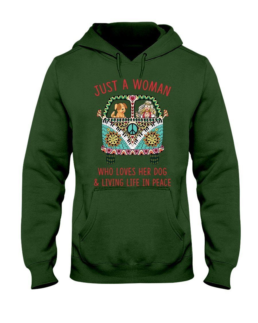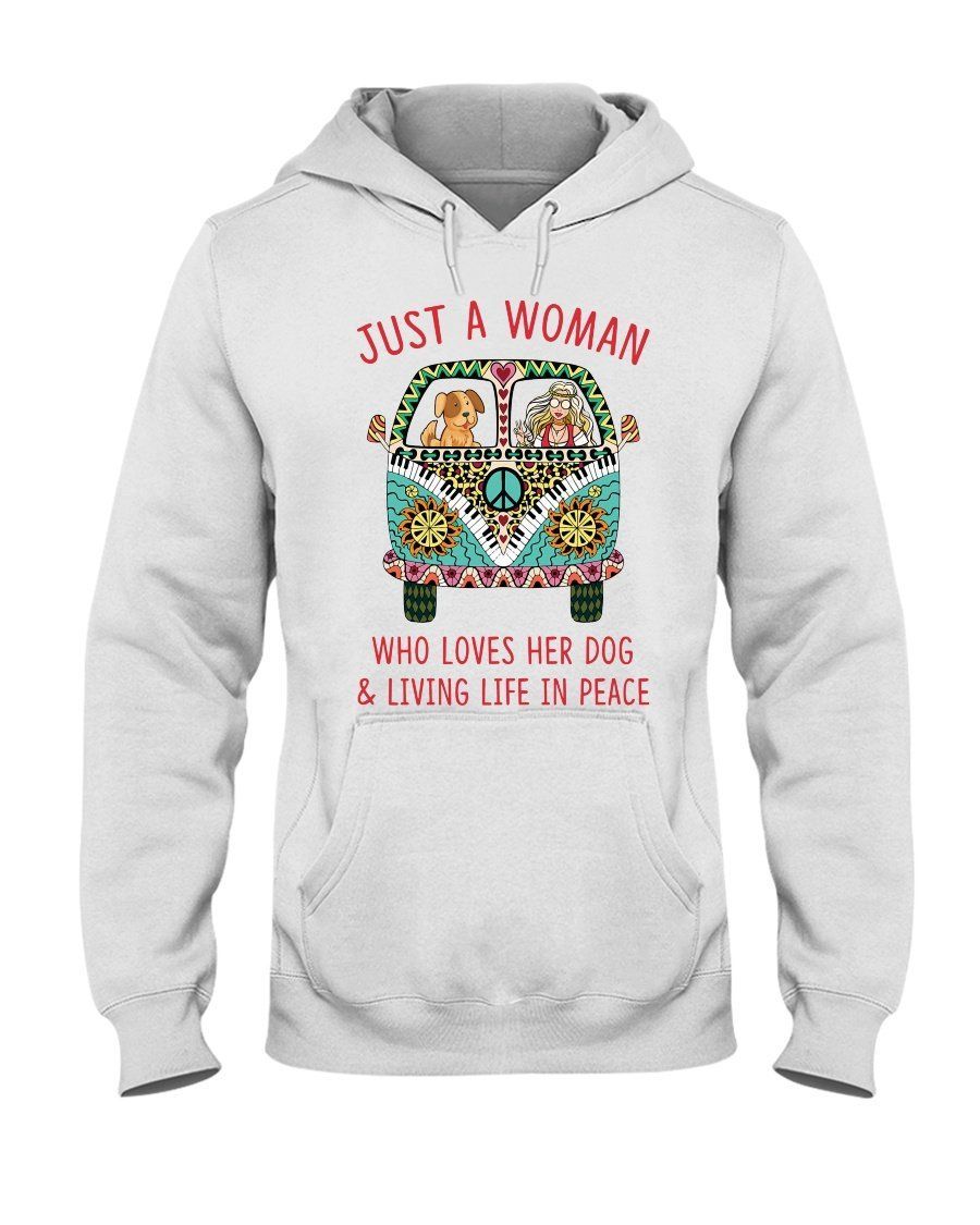 Just A Woman Who Loves Her Dog And Living Life In Peace Hoodie