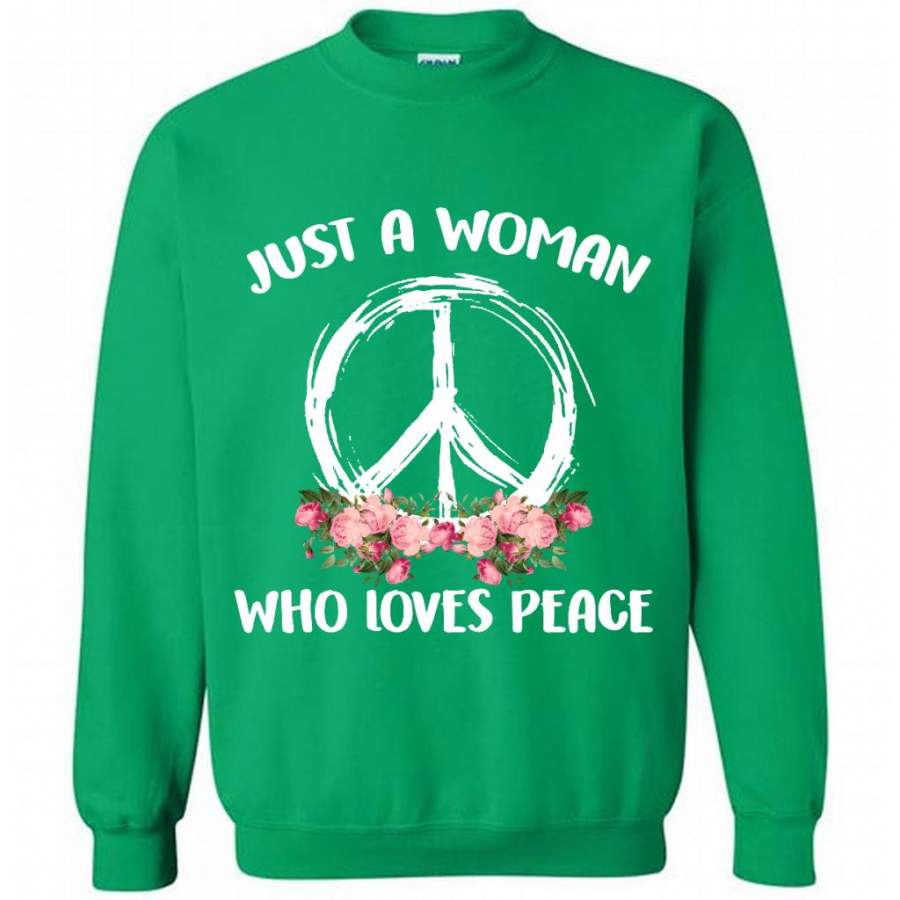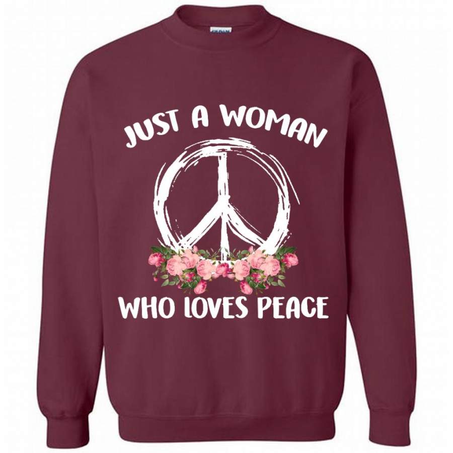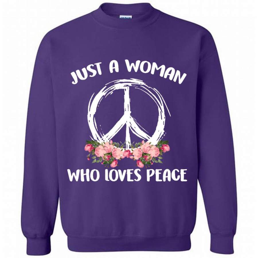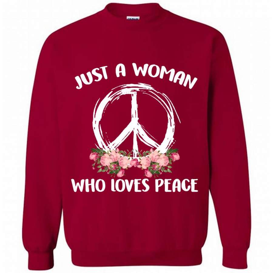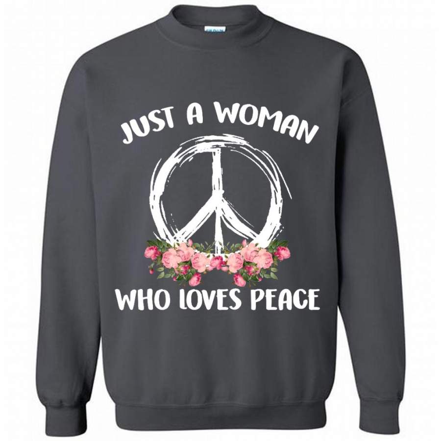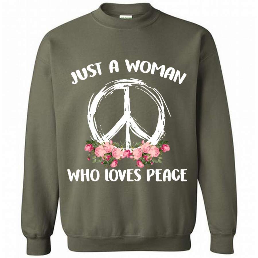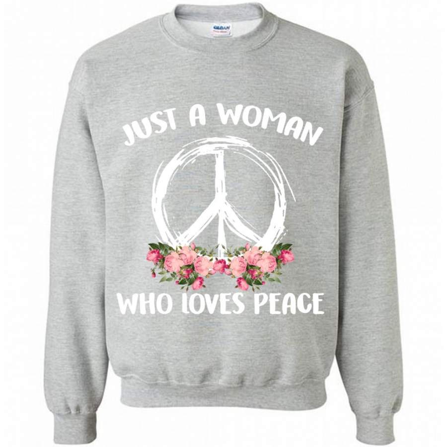 Just A Woman Who Loves Peace, Floral Design – Gildan Crewneck Sweatshirt