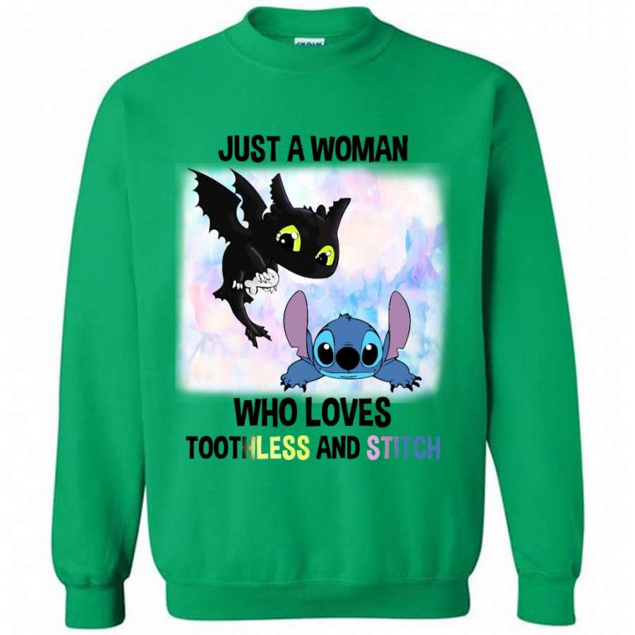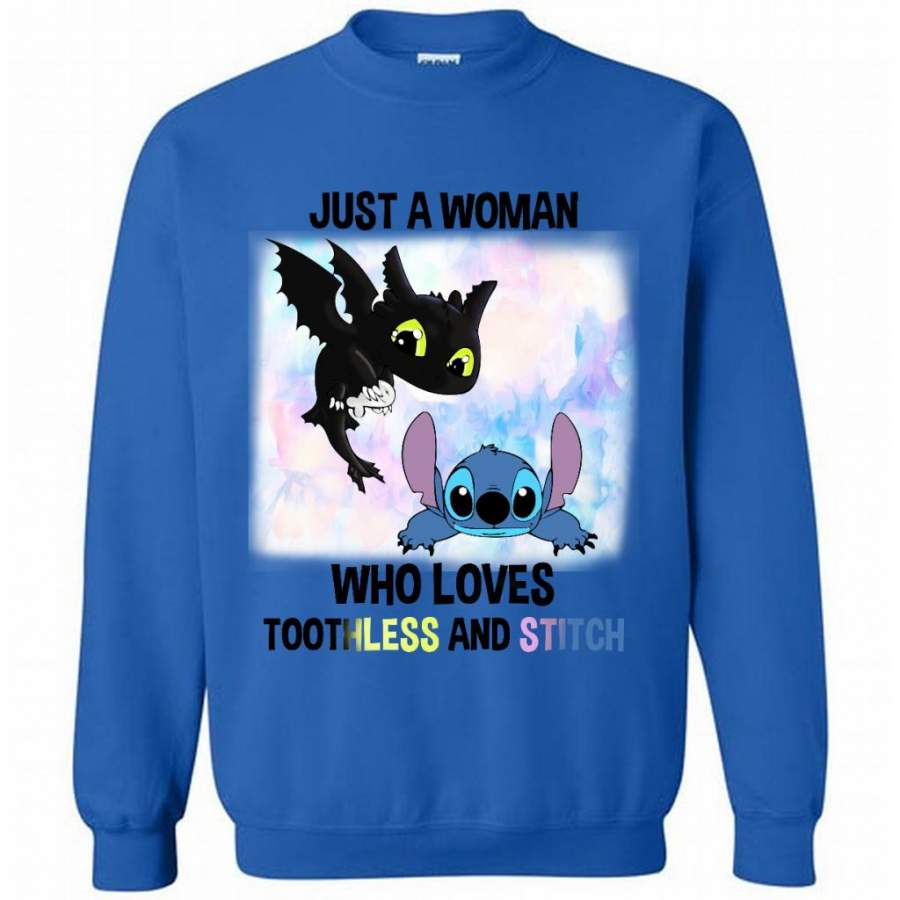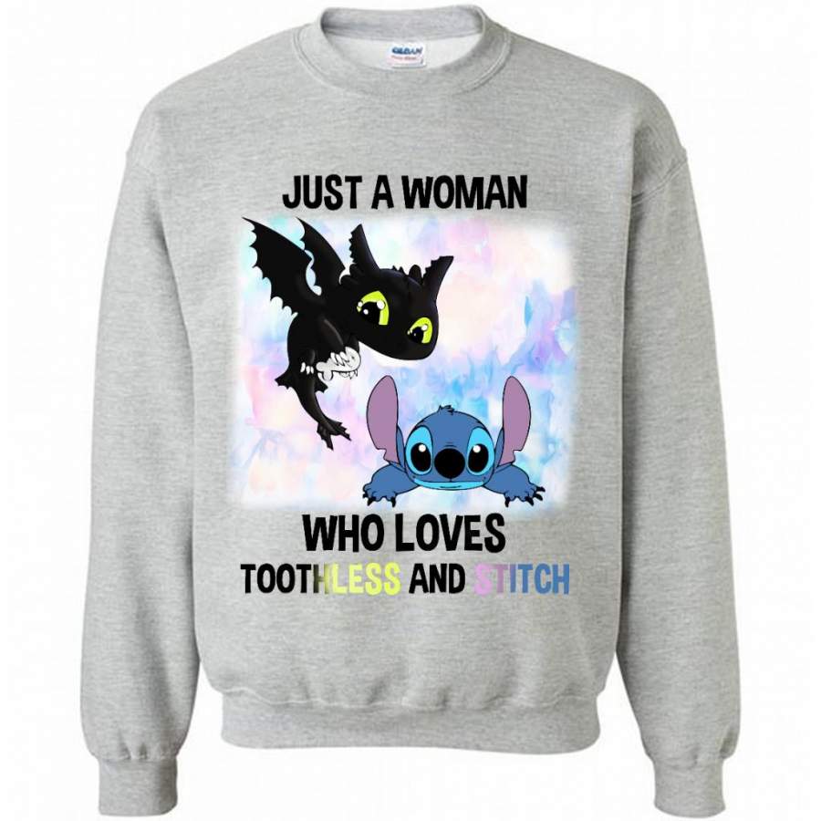 So whether you're looking to show off your own name or create a personalized gift for someone special, LateAndLow Store has got you covered. Start designing your own custom Just A Woman WHo Loves Toothless And Stitch W – Gildan Crewneck Sweatshirt print-on-demand product today, and let us bring your vision to life!