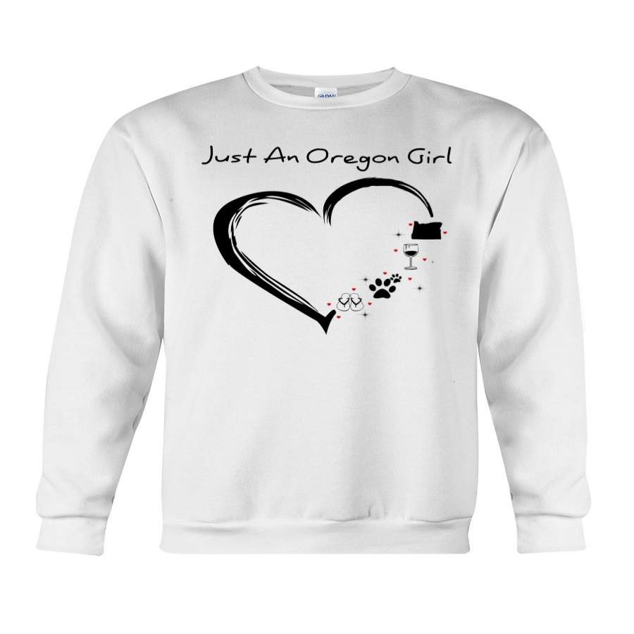 Just An Oregon Girl Heart Love Dog And Wine Sweatshirt
