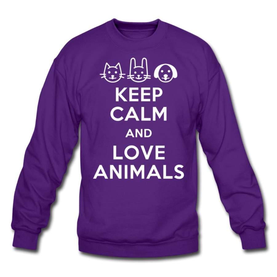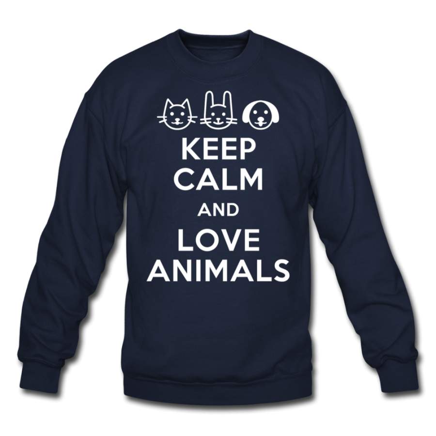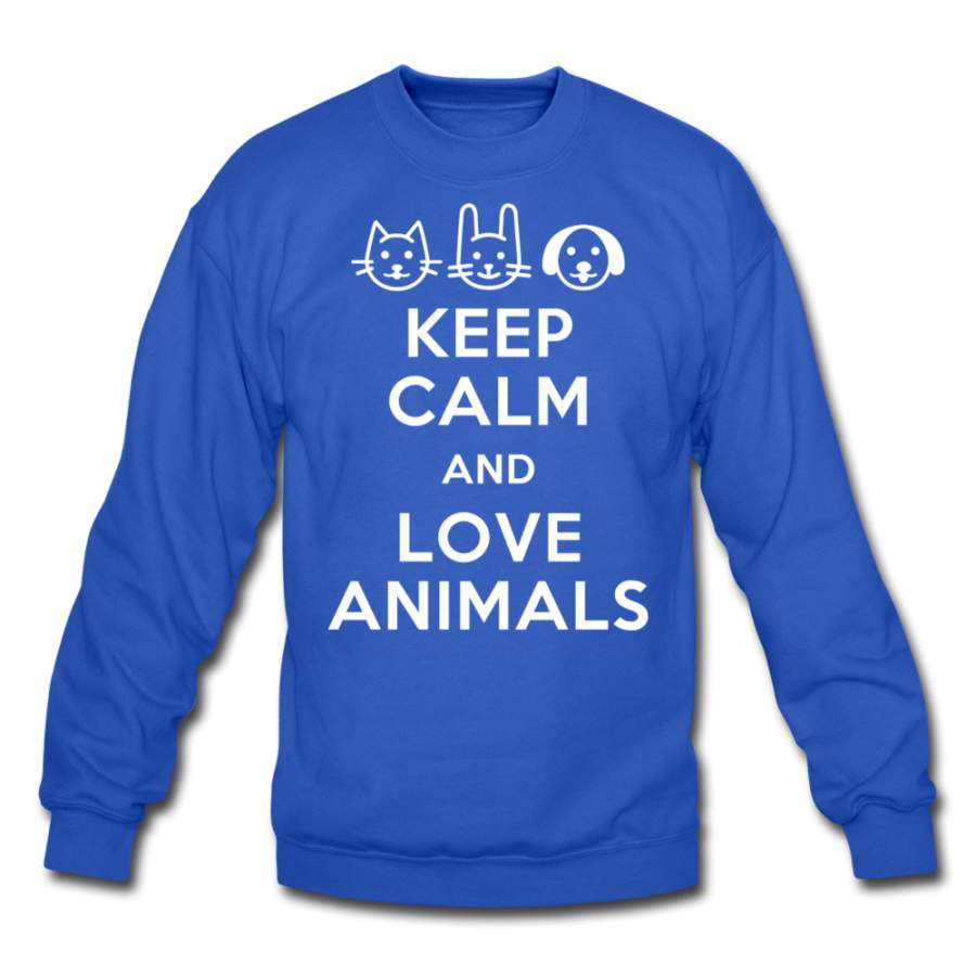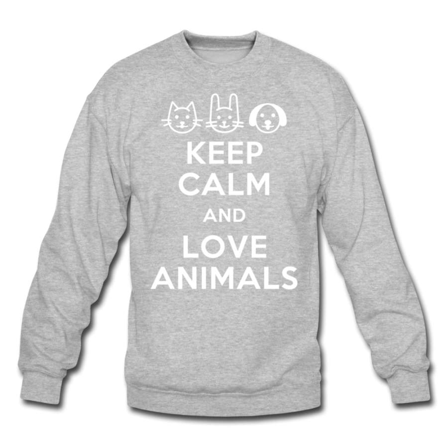So whether you're looking to show off your own name or create a personalized gift for someone special, LateAndLow Store has got you covered. Start designing your own custom Keep calm and love animals Crewneck Sweatshirt print-on-demand product today, and let us bring your vision to life!