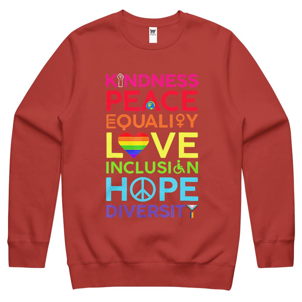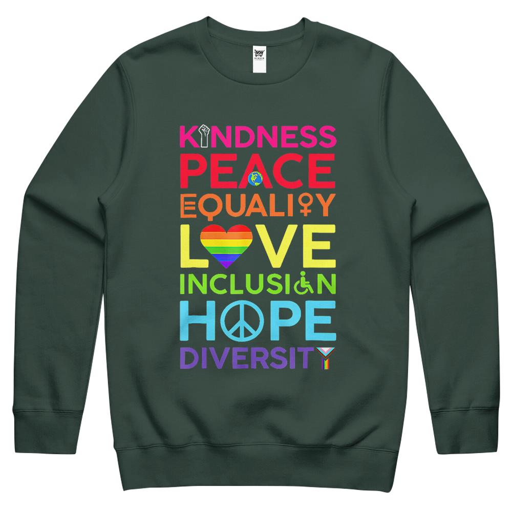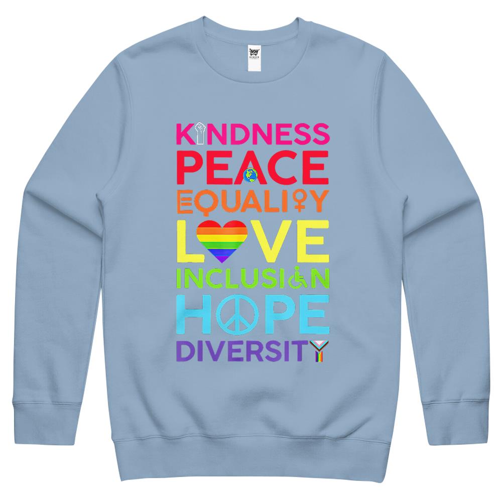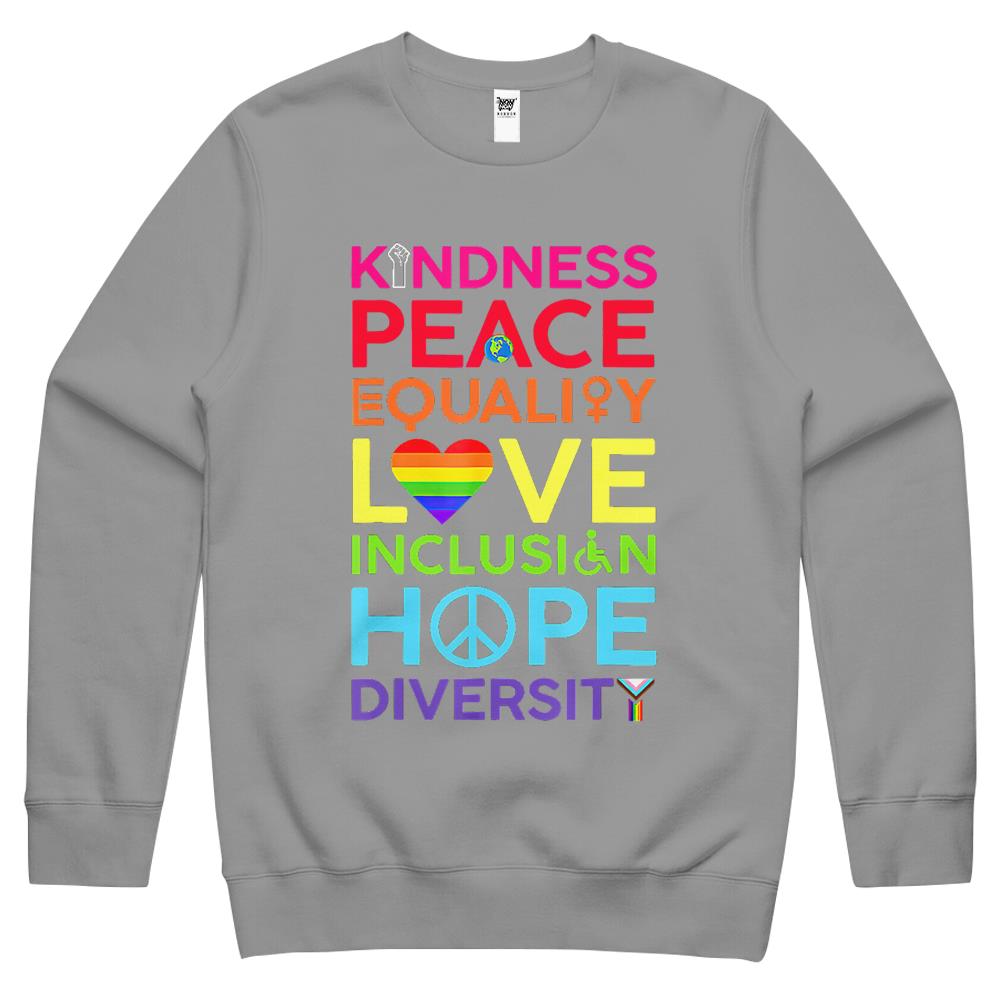 Kindness Peace Equality Love Inclusion Hope Diversity Crewneck Sweatshirt