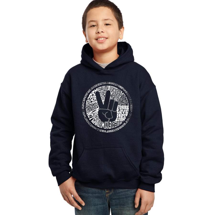 LA Pop Art Boy’s Word Art Hooded Sweatshirt – MAKE LOVE NOT WAR