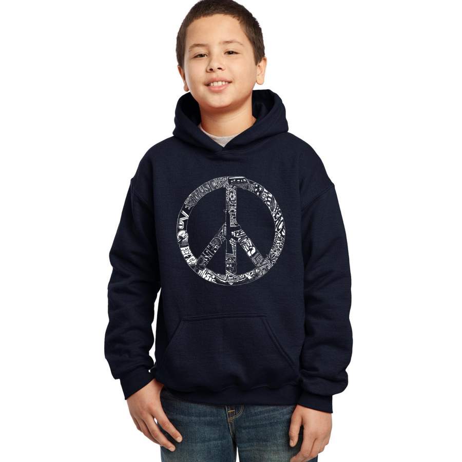 LA Pop Art Boy’s Word Art Hooded Sweatshirt – PEACE, LOVE, & MUSIC