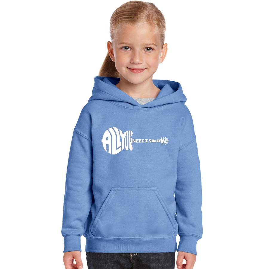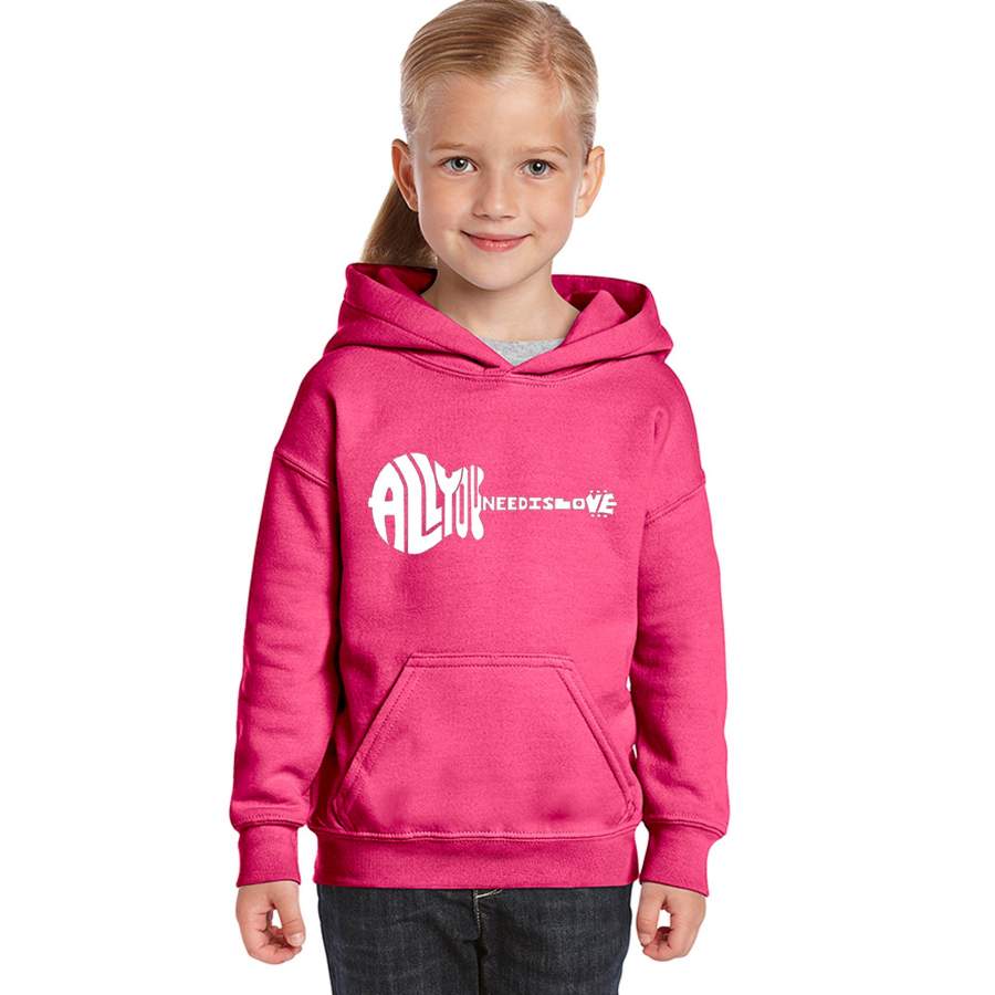 LA Pop Art Girl’s Word Art Hooded Sweatshirt – All You Need Is Love
