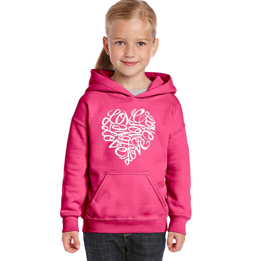 LA Pop Art Girl’s Word Art Hooded Sweatshirt – LOVE