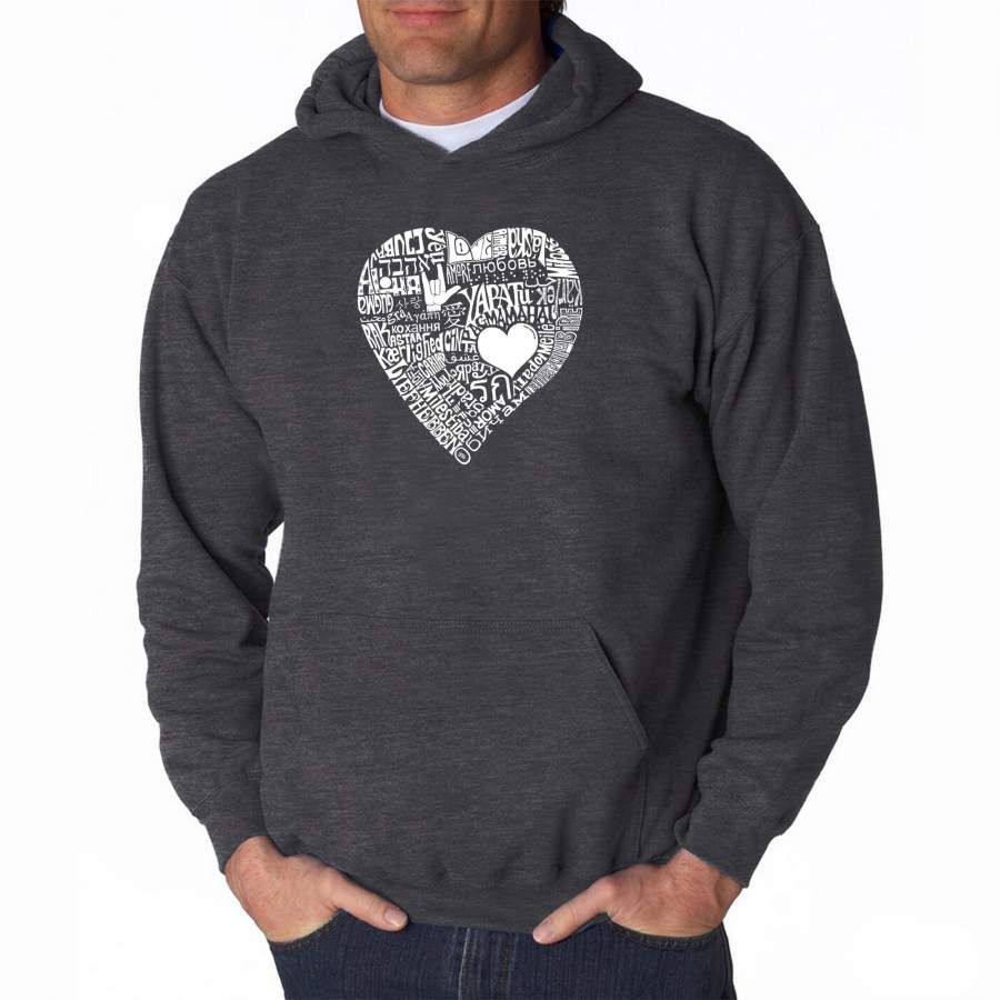 LA Pop Art Men’s Word Art Hooded Sweatshirt – LOVE IN 44 DIFFERENT LANGUAGES