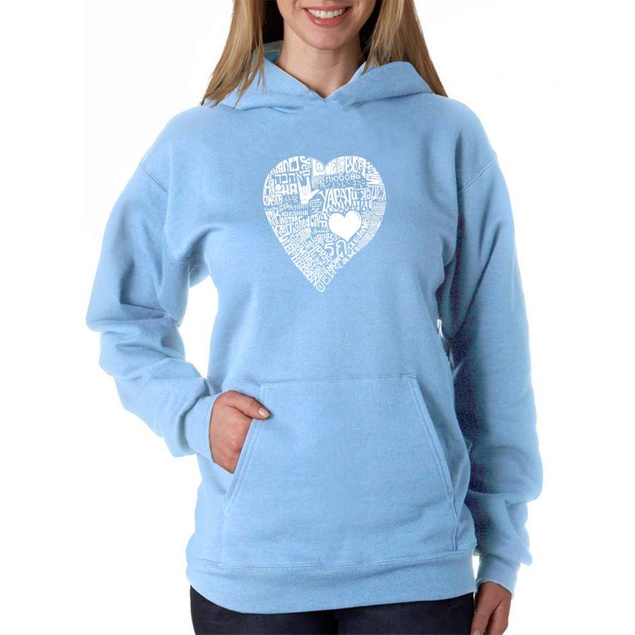 LA Pop Art Women’s Word Art Hooded Sweatshirt -LOVE IN 44 DIFFERENT LANGUAGES