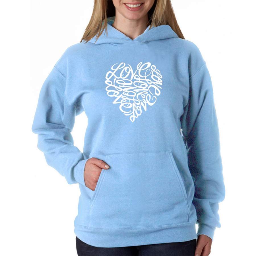 LA Pop Art Women’s Word Art Hooded Sweatshirt -LOVE