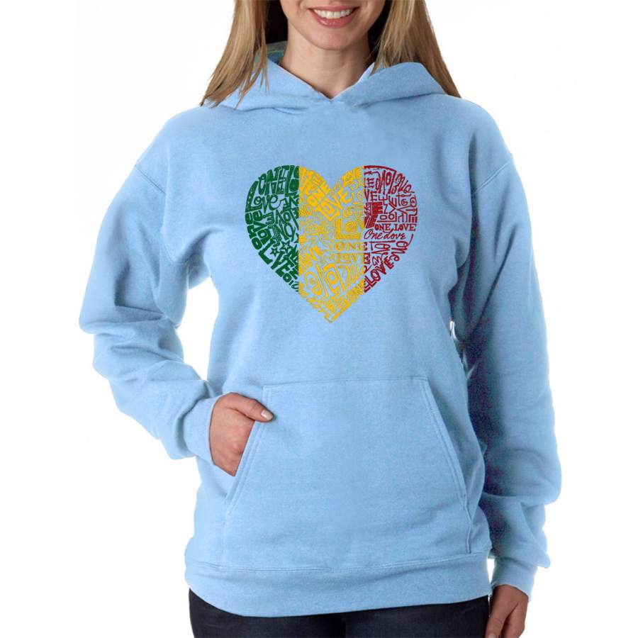 LA Pop Art Women’s Word Art Hooded Sweatshirt -One Love Heart