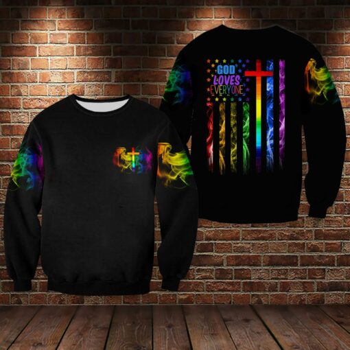Lgbt God Loves Everyone 3D All Over Printed Shirt For Lgbt Community, Happy Lgbt History Month, Gift For Lgbt, Queer Lgbt, Bisexual Shirts