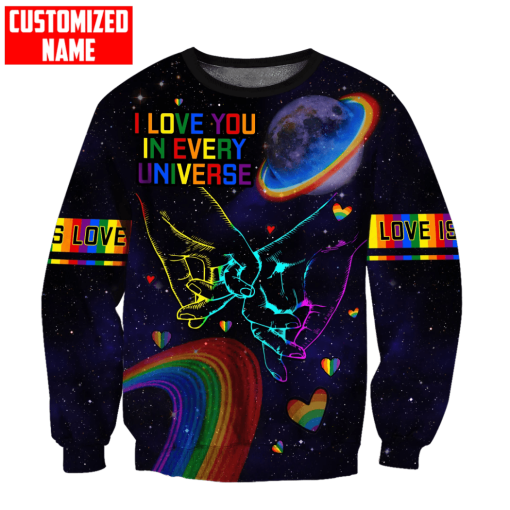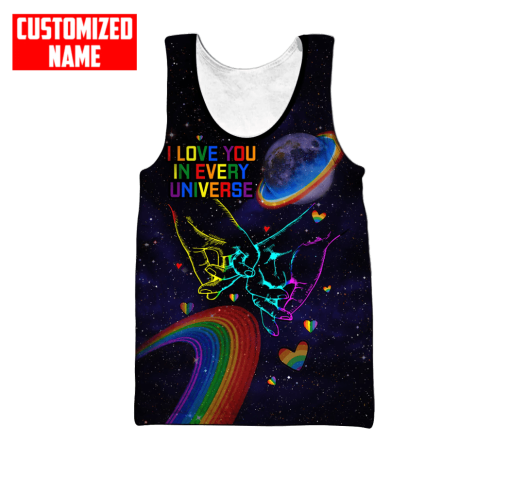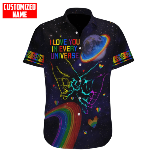 So whether you're looking to show off your own name or create a personalized gift for someone special, LateAndLow Store has got you covered. Start designing your own custom Lgbt I Love You In Every Universe Pride Unisex Shirt print-on-demand product today, and let us bring your vision to life!